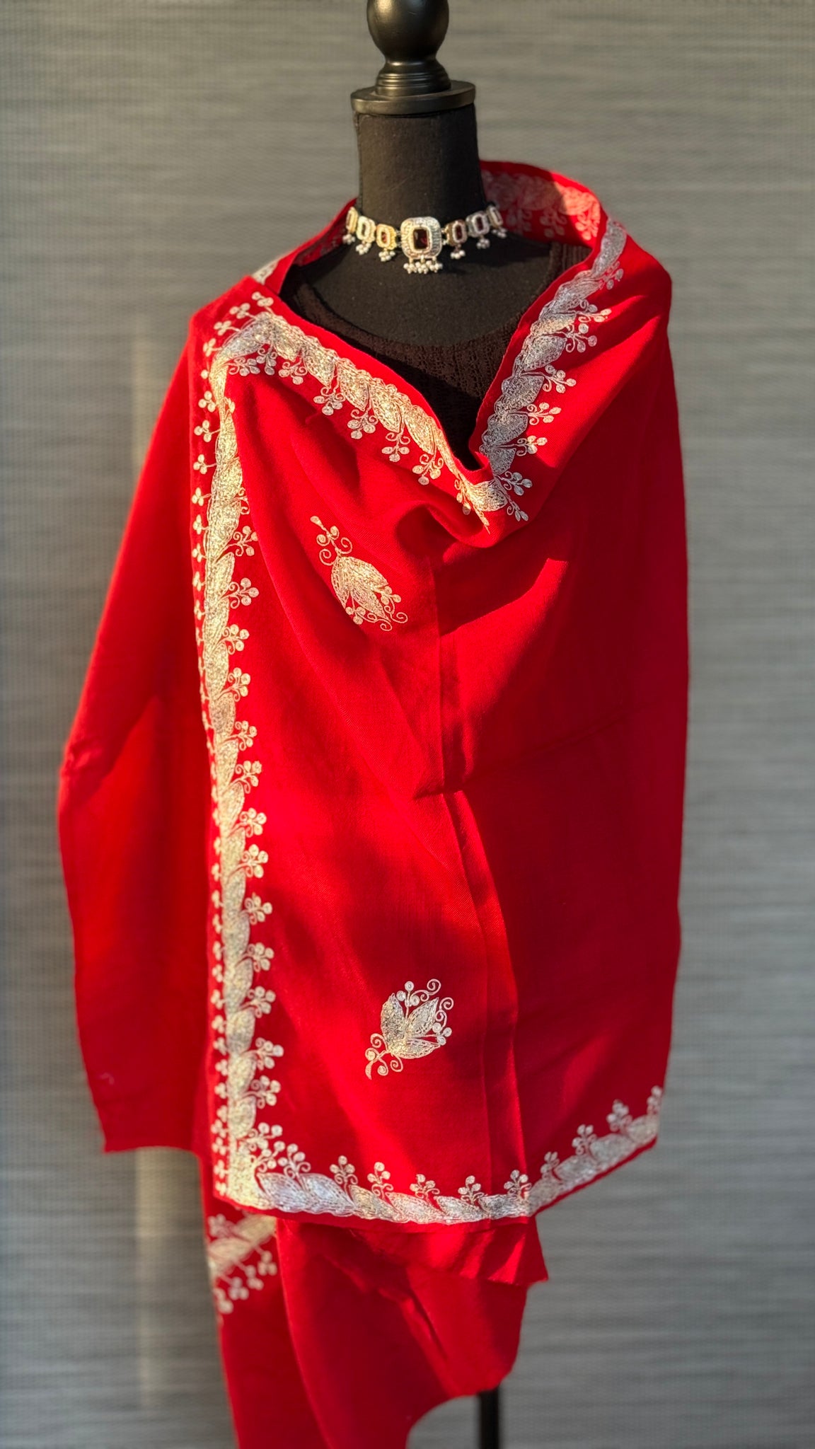 Kashmiri Stole - Red Zari Aariwork
