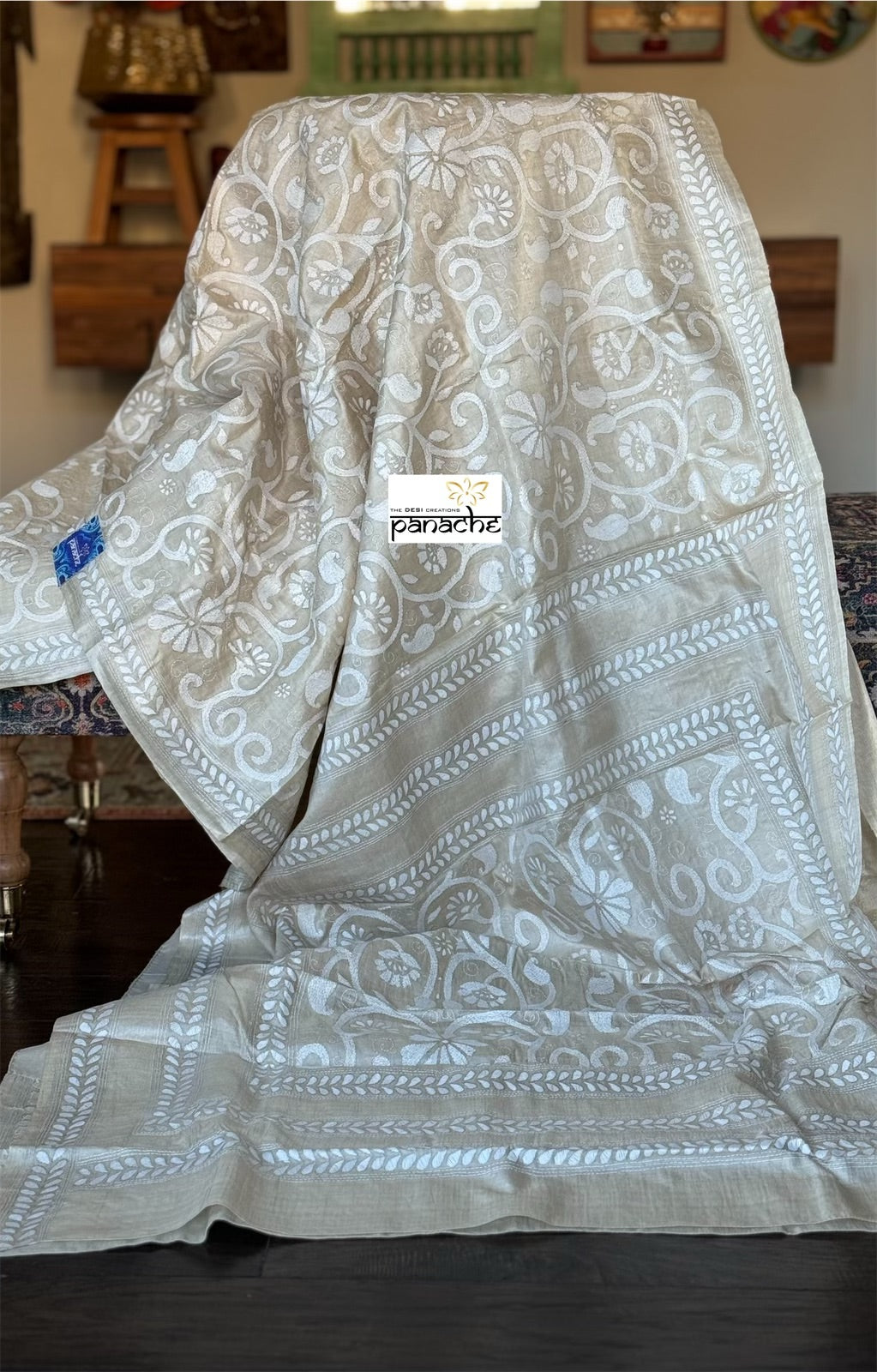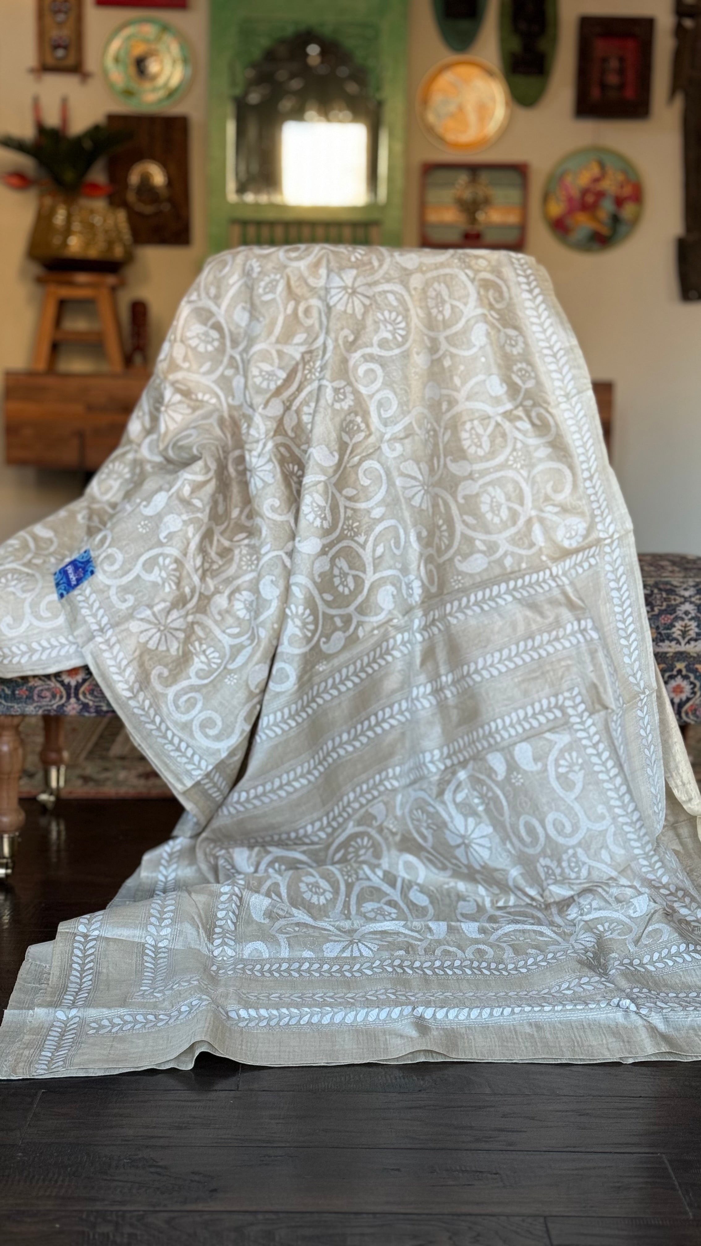 Saree Type: Kantha Stitch on Pure Tussar Silk
