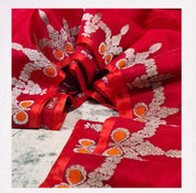Pure Chanderi Pattu Silk - Red Silver Zari