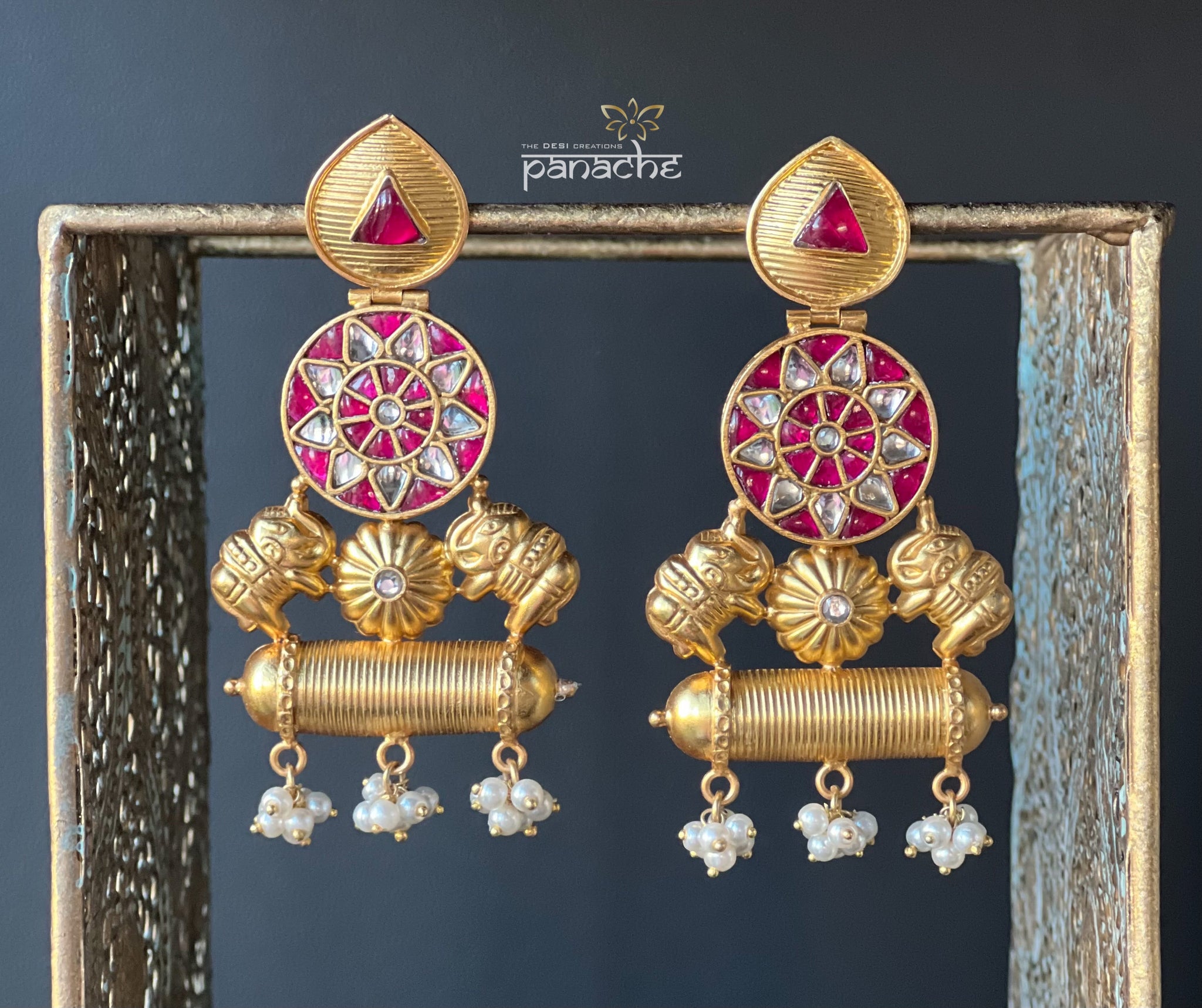 Earring 925 Silver- Kundan Drop Golden
