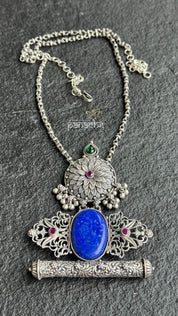 Silver Long Necklace - Lapis