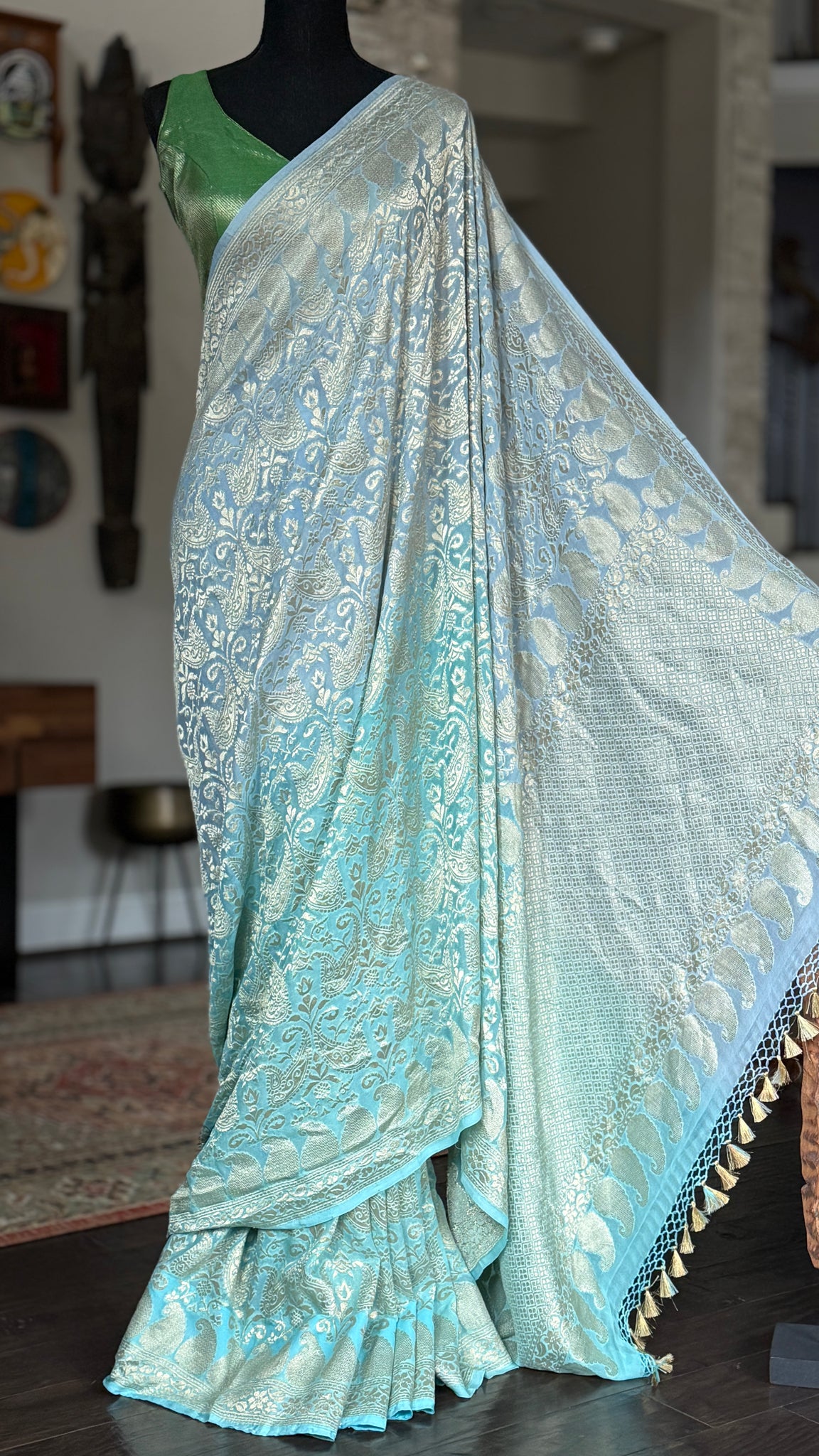 Khaddi Georgette Shaded Banarasi - Light Blue Tanchui