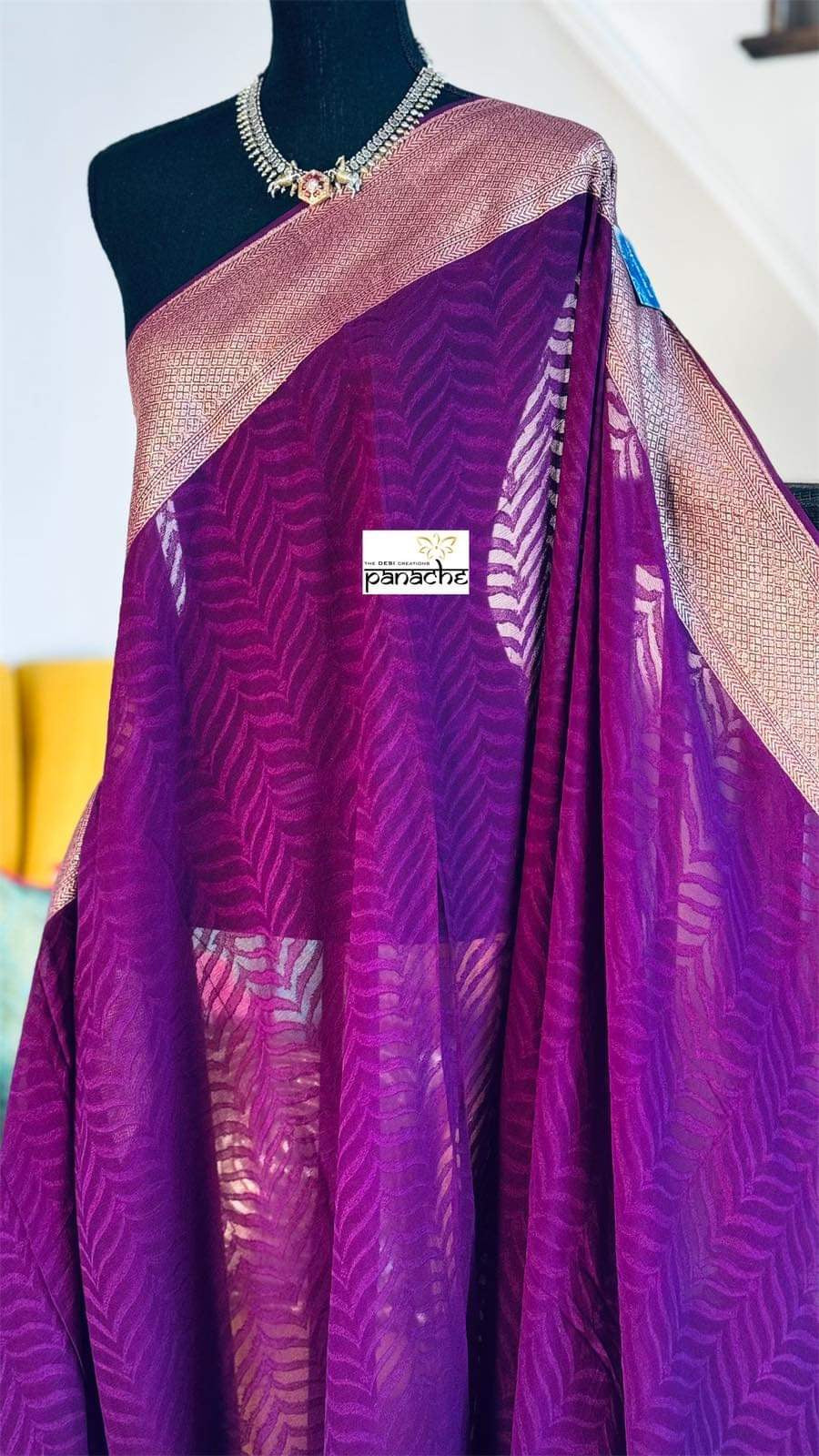 Khaddi Georgette Tanchoi Banarasi - Wine Purple