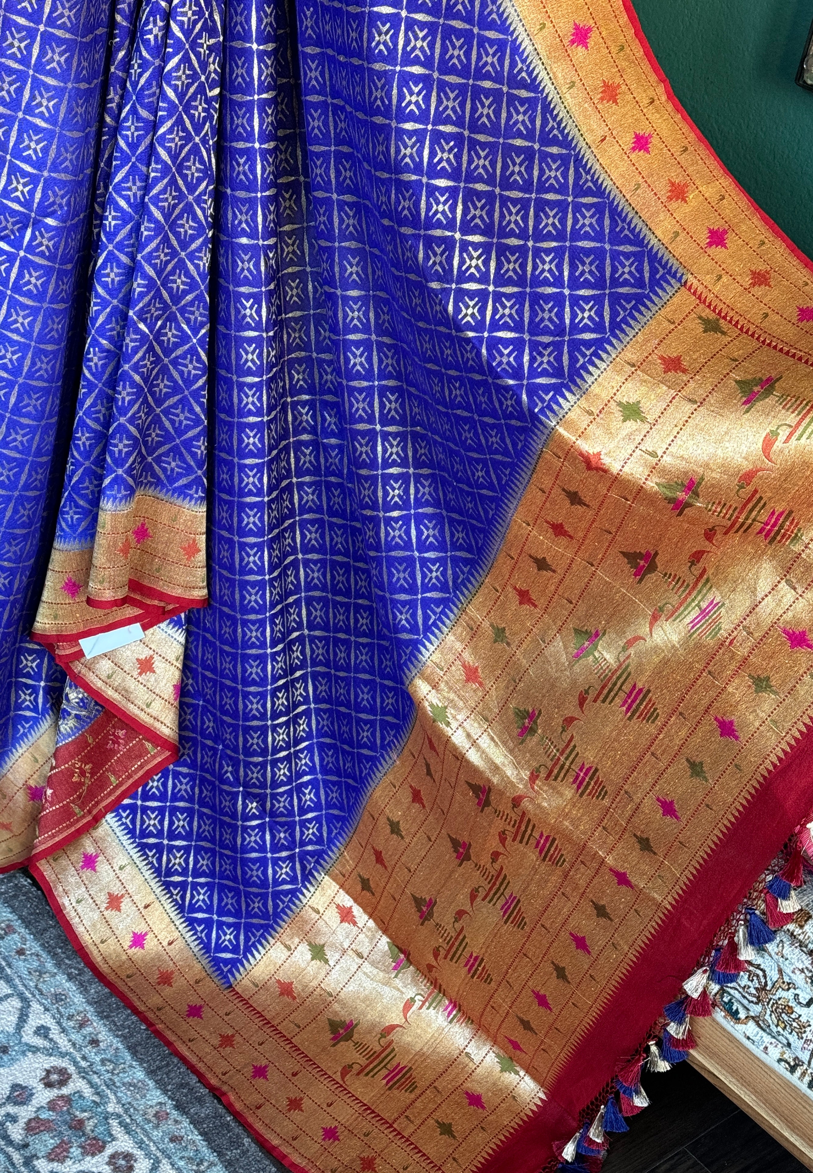 Khaddi Tussar Georgette Paithani Banarasi - Purplish Blue