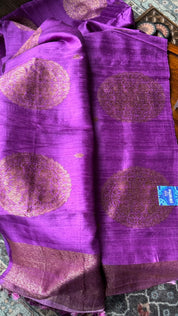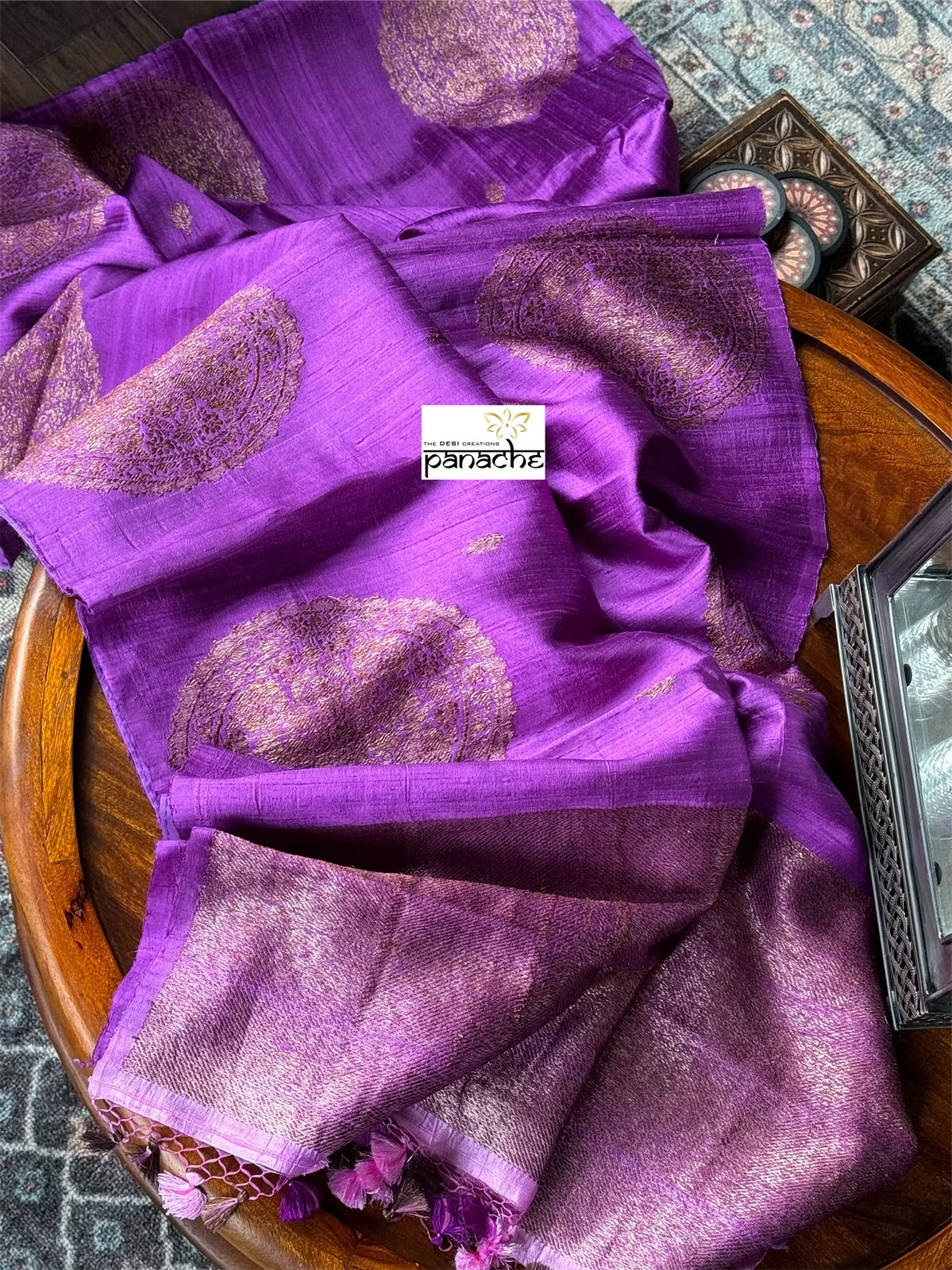 Pure Tussar Silk Banarasi - Purple Kadwa