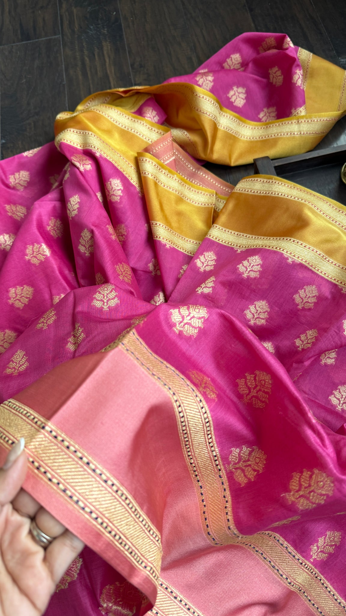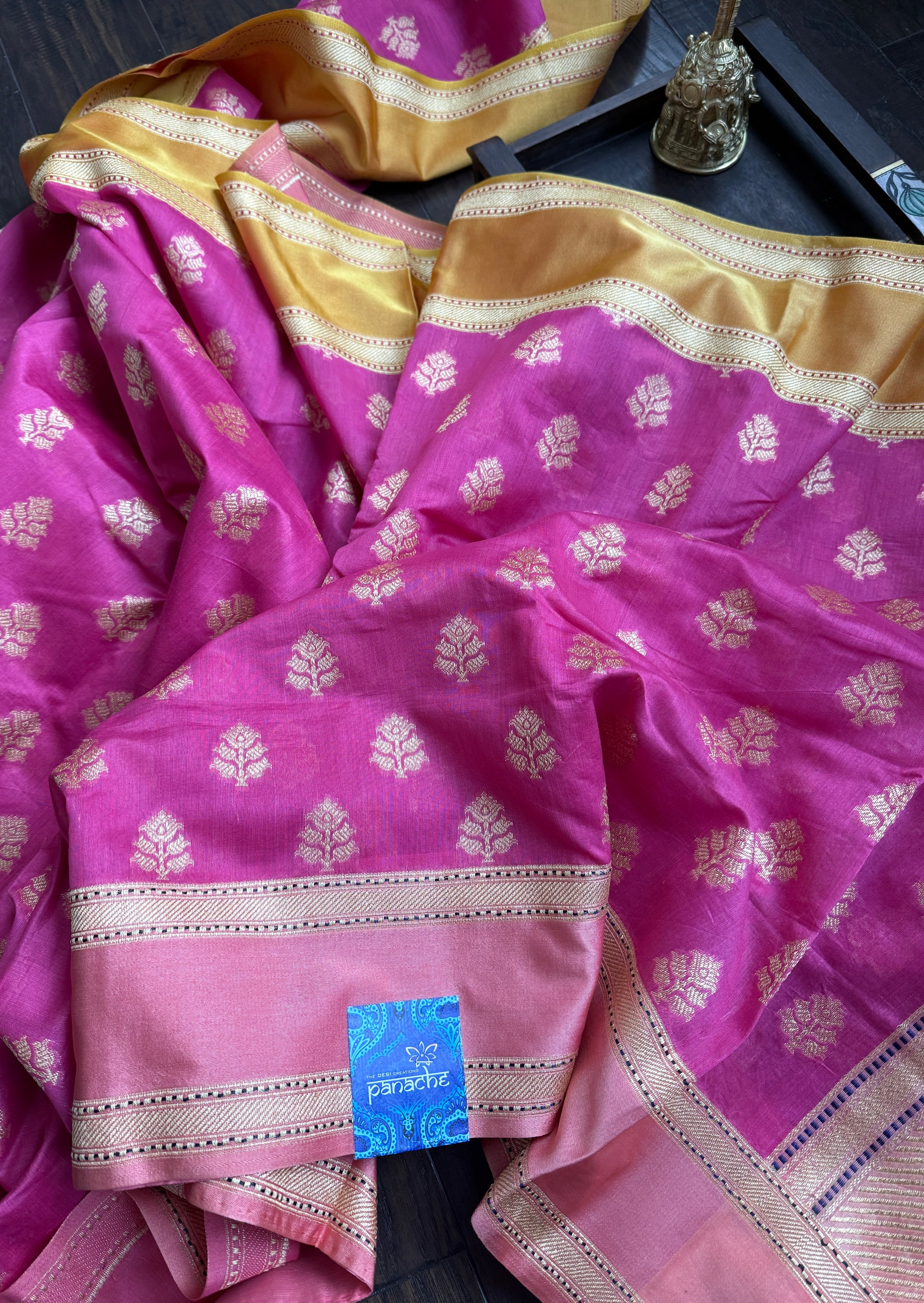 Color: Pink, Yellow, Magenta, Antique Golden Zari