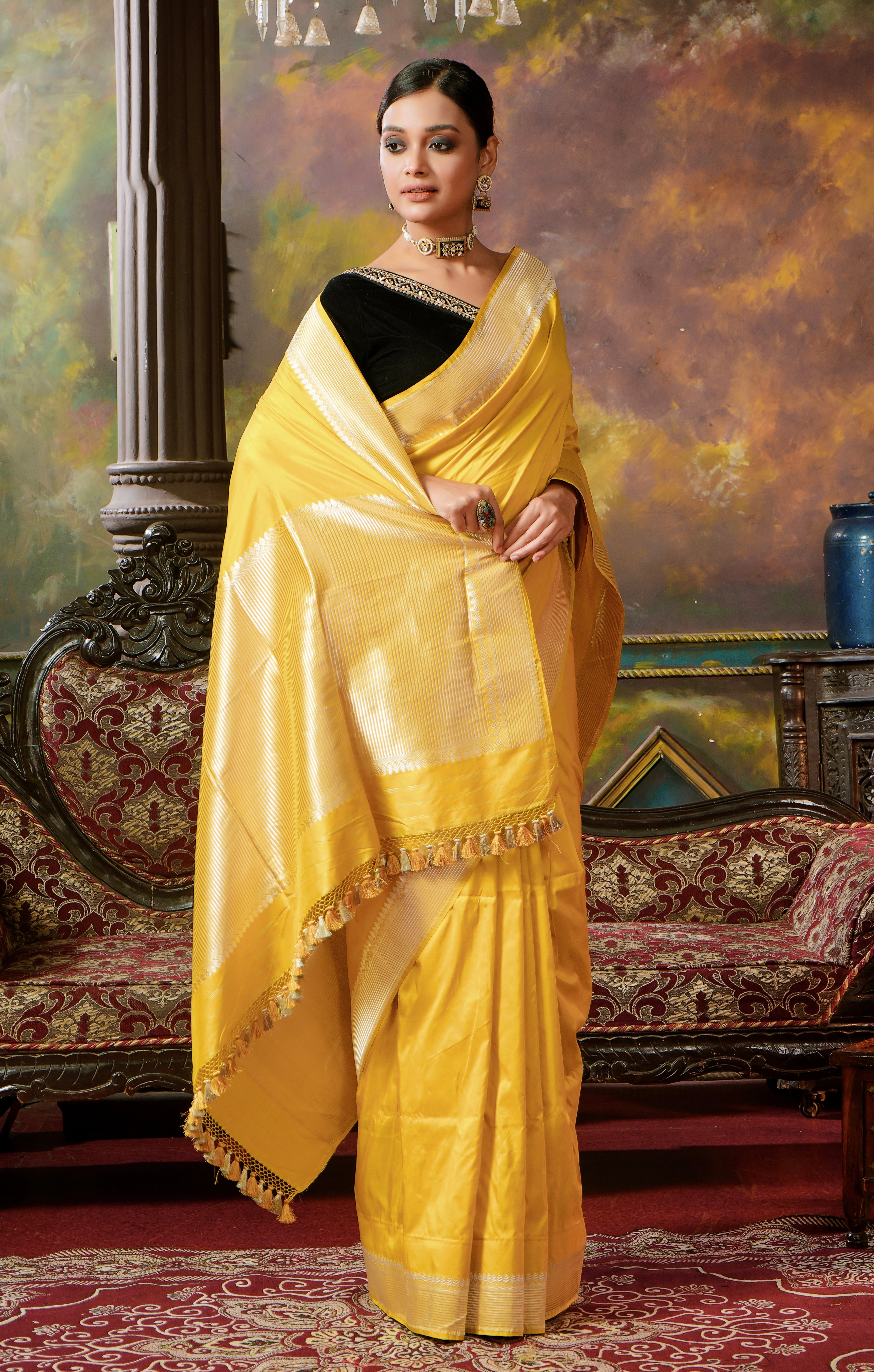 Pure Katan Silk Kadhua Banarasi - Lemon Ochre Yellow