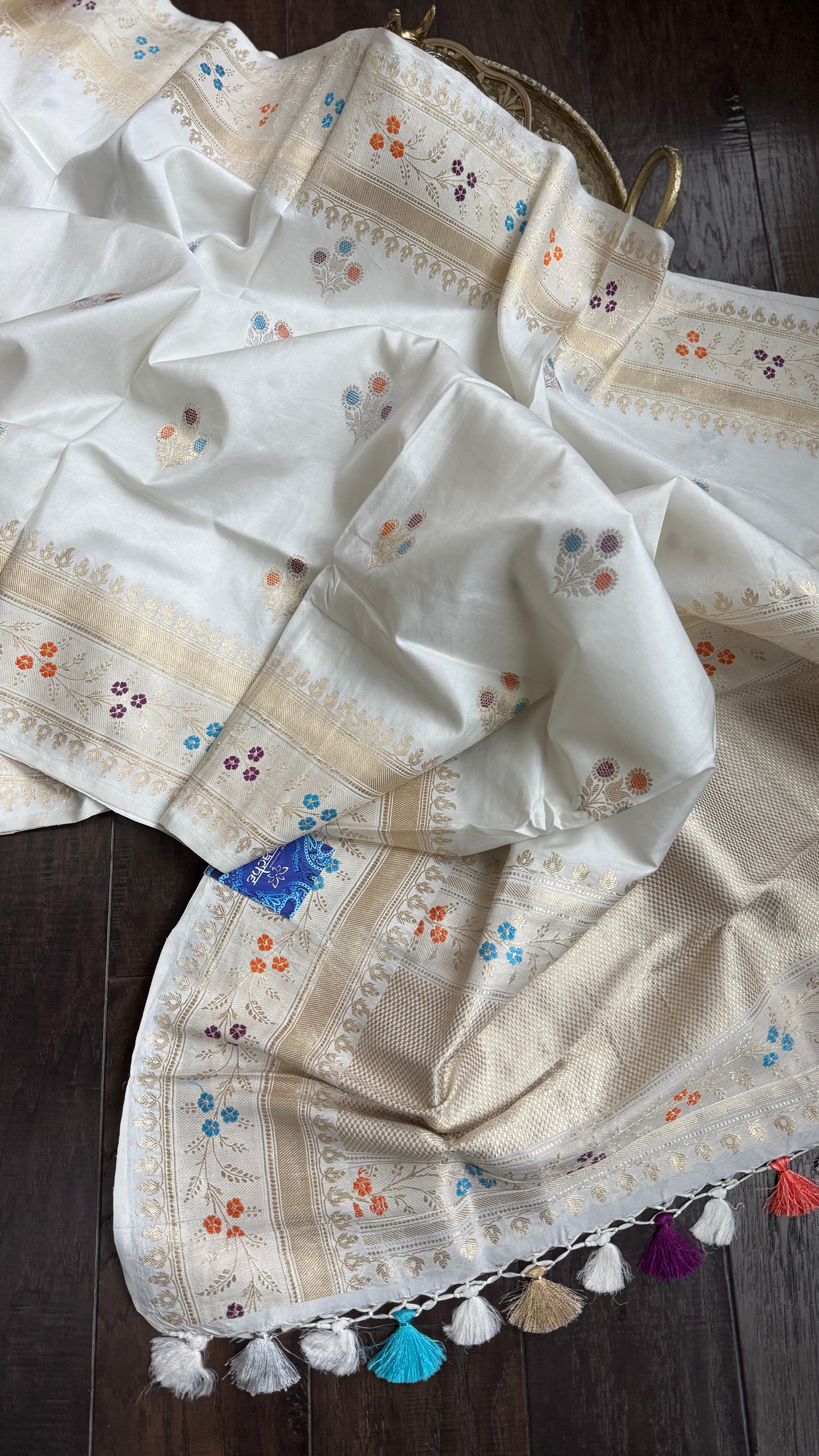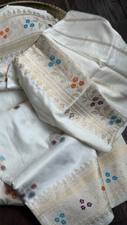 Pure Katan Silk Kadhua Banarasi - White antique Zari