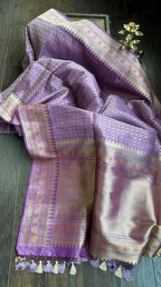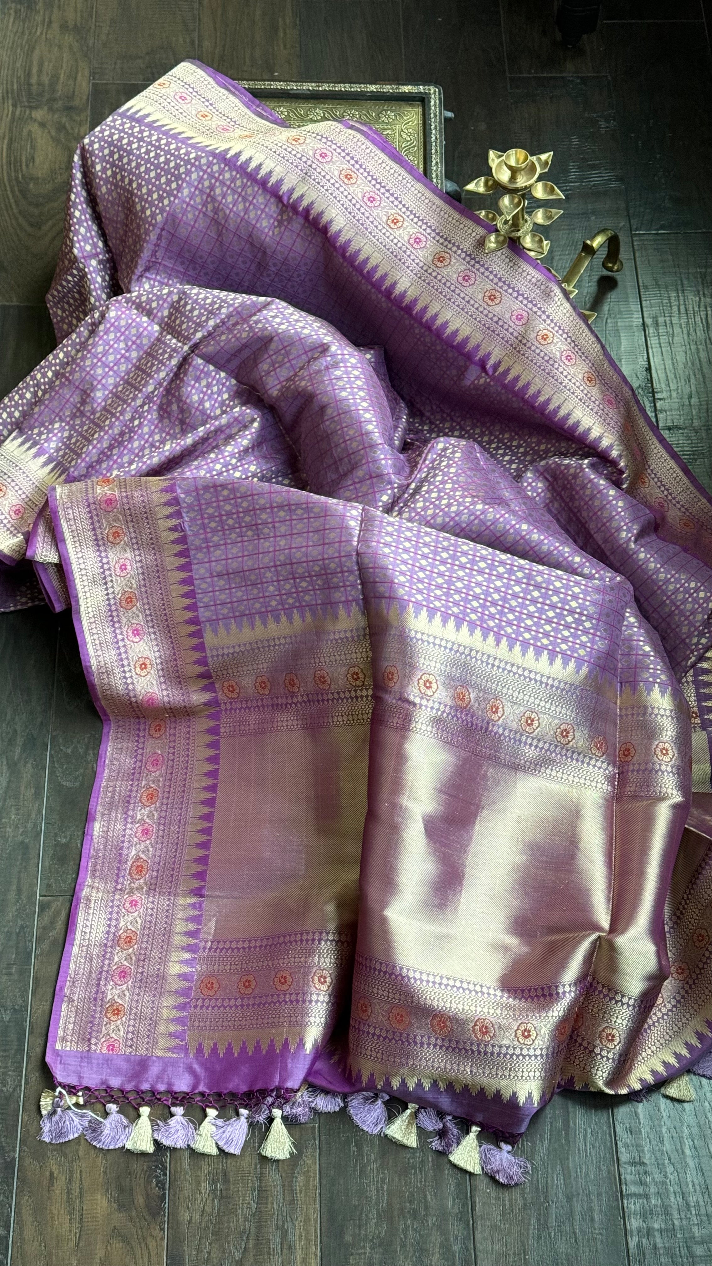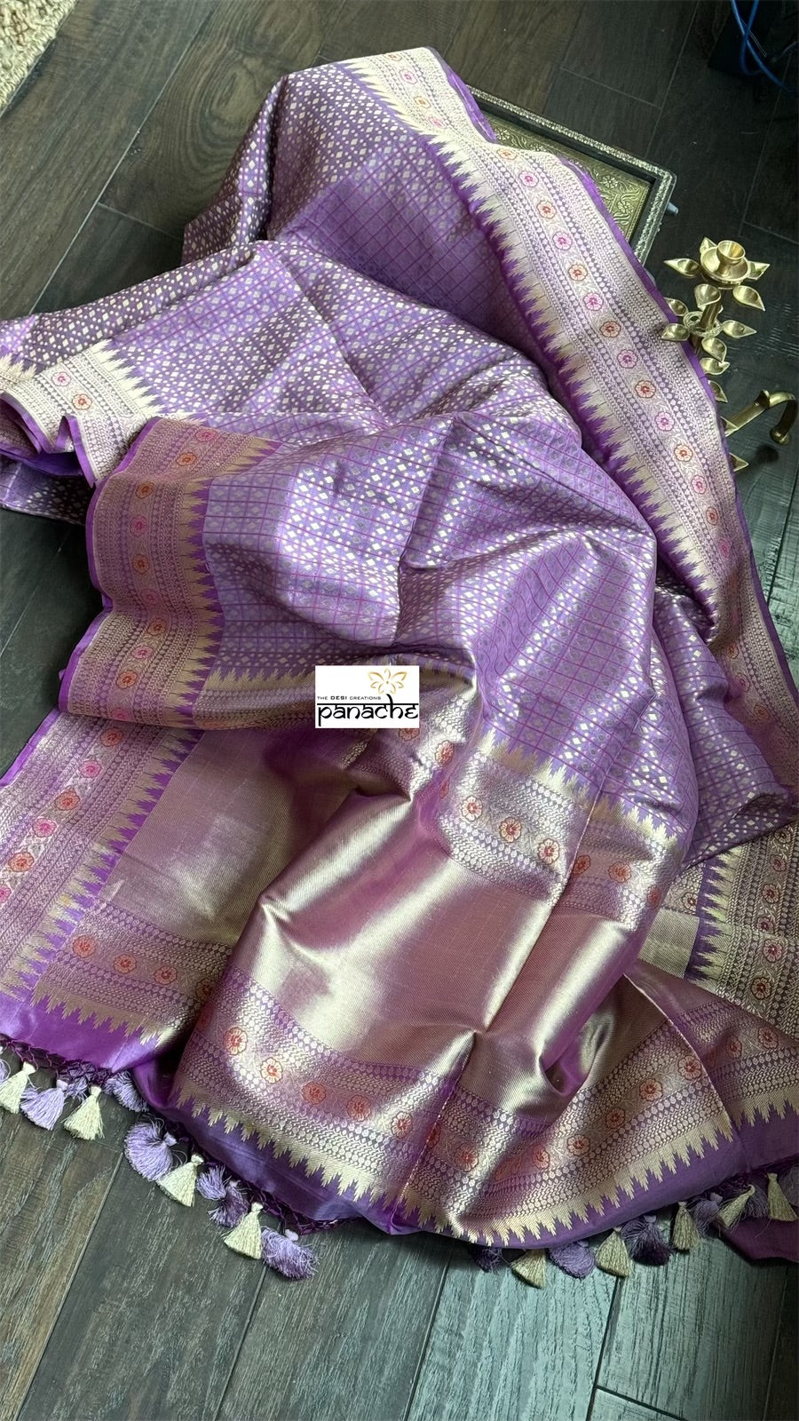Pure Silk Brocade Banarasi - Purple Antique Zari Kadwa