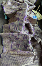 Pure Silk Katan Banarasi- Purple Antique Gold Zari