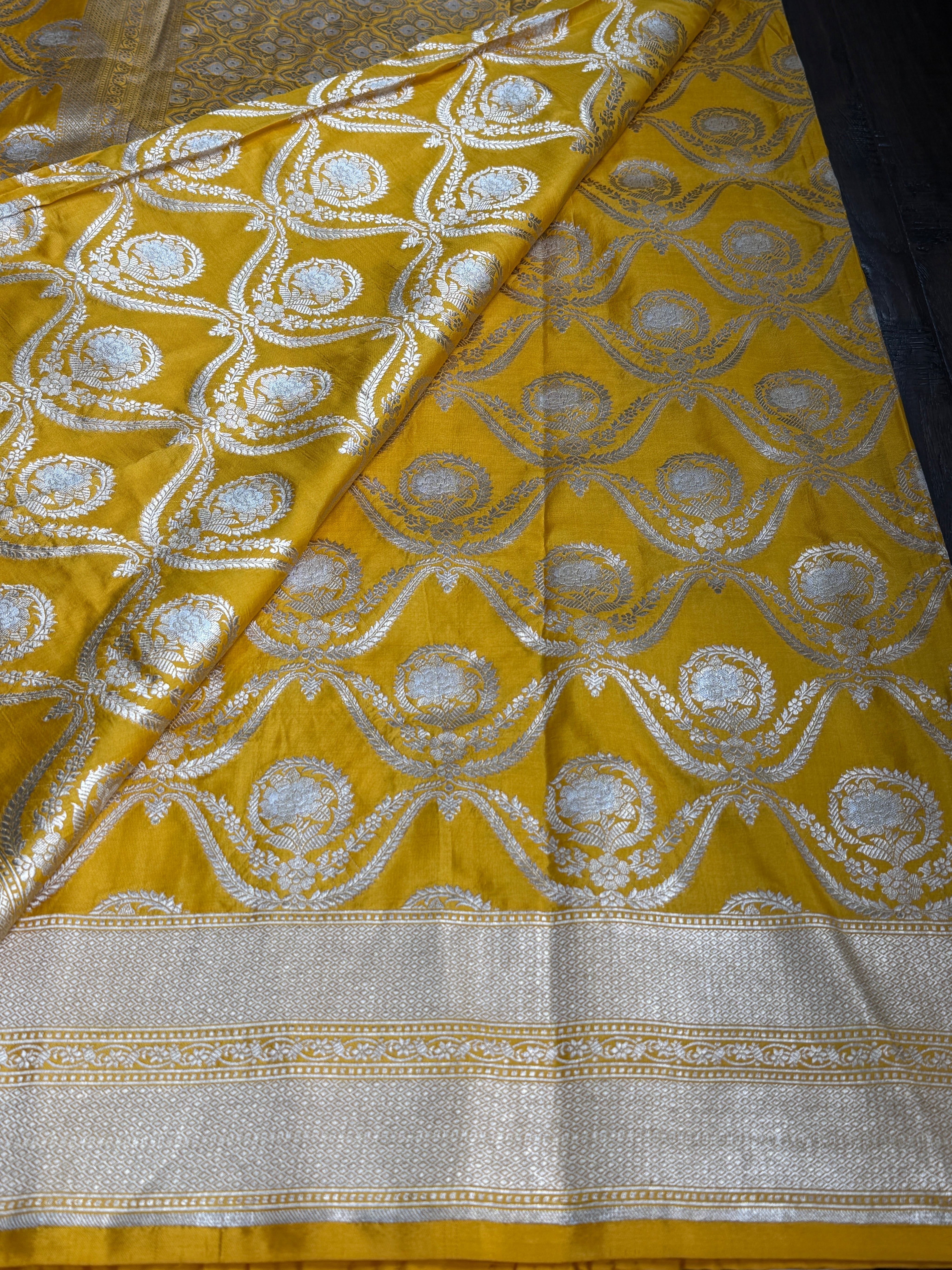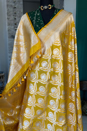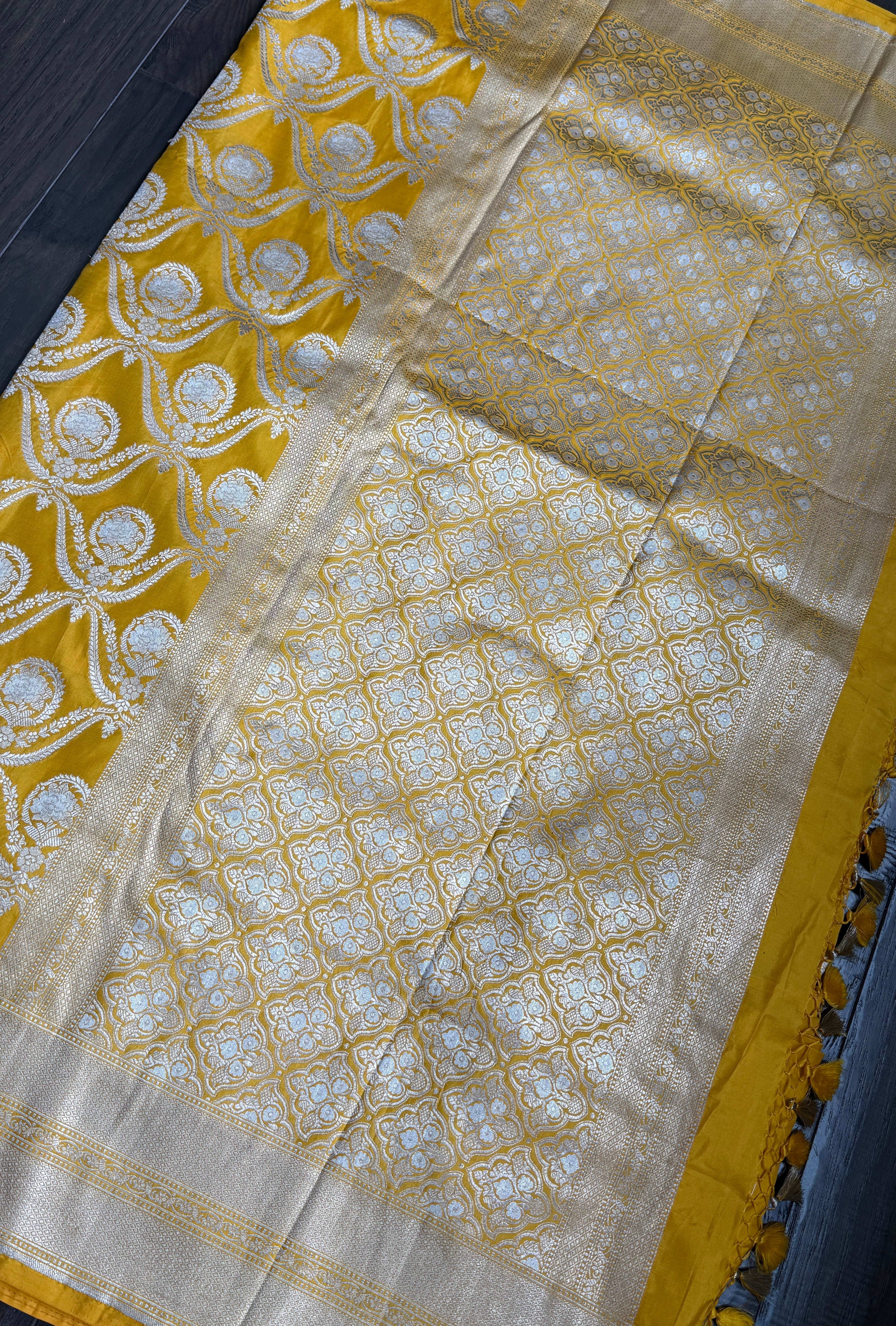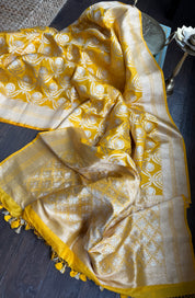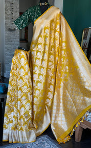Pure Silk Katan Banarasi- Yellow Zari Woven