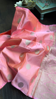 Pure Silk Mashru Banarasi- Baby Pink Dual Shaded