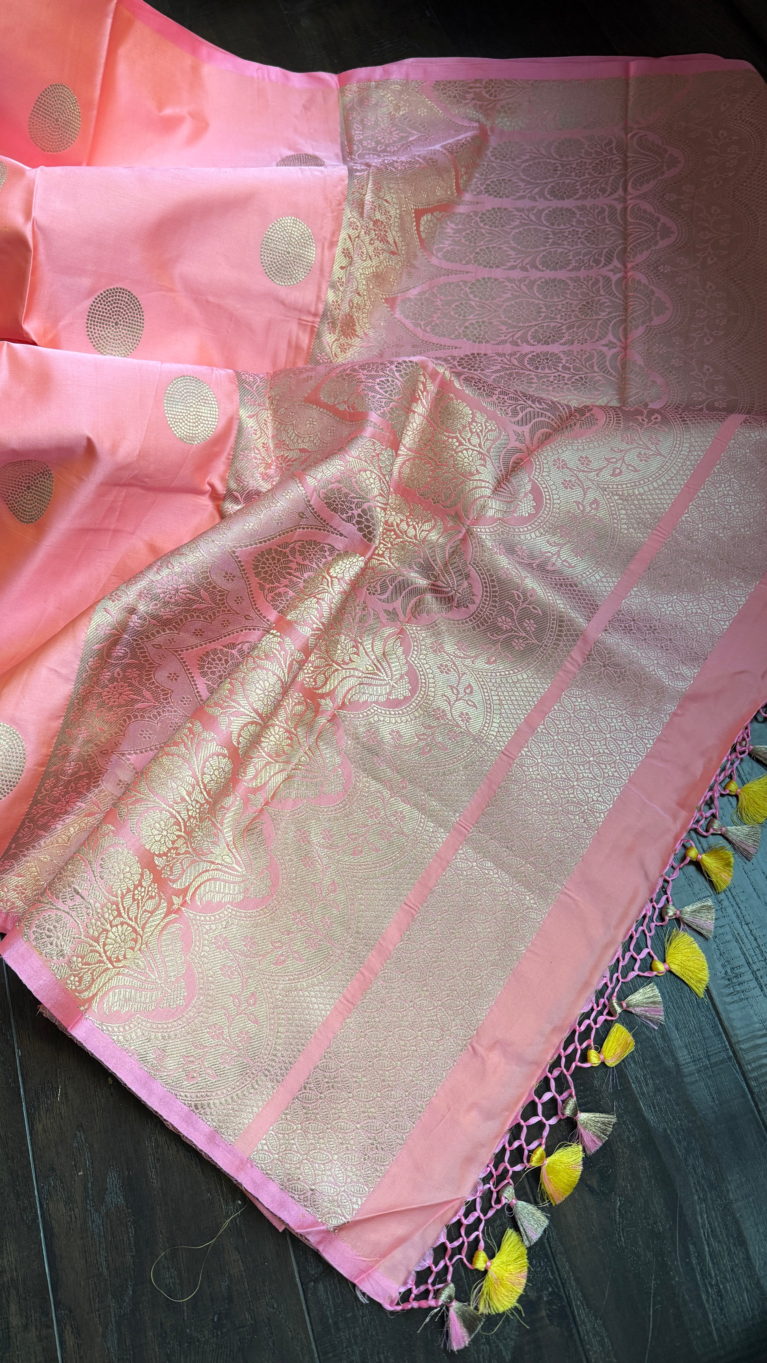 Design : Baby Pink dual shaded body with zari woven round Kadhua motifs, , Zari woven palla.