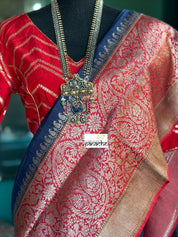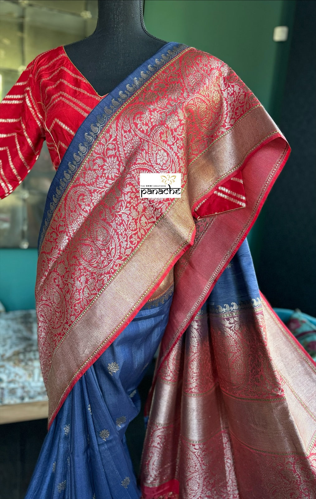 Pure Tassur by Katan Silk Banarasi - Navy Blue Red