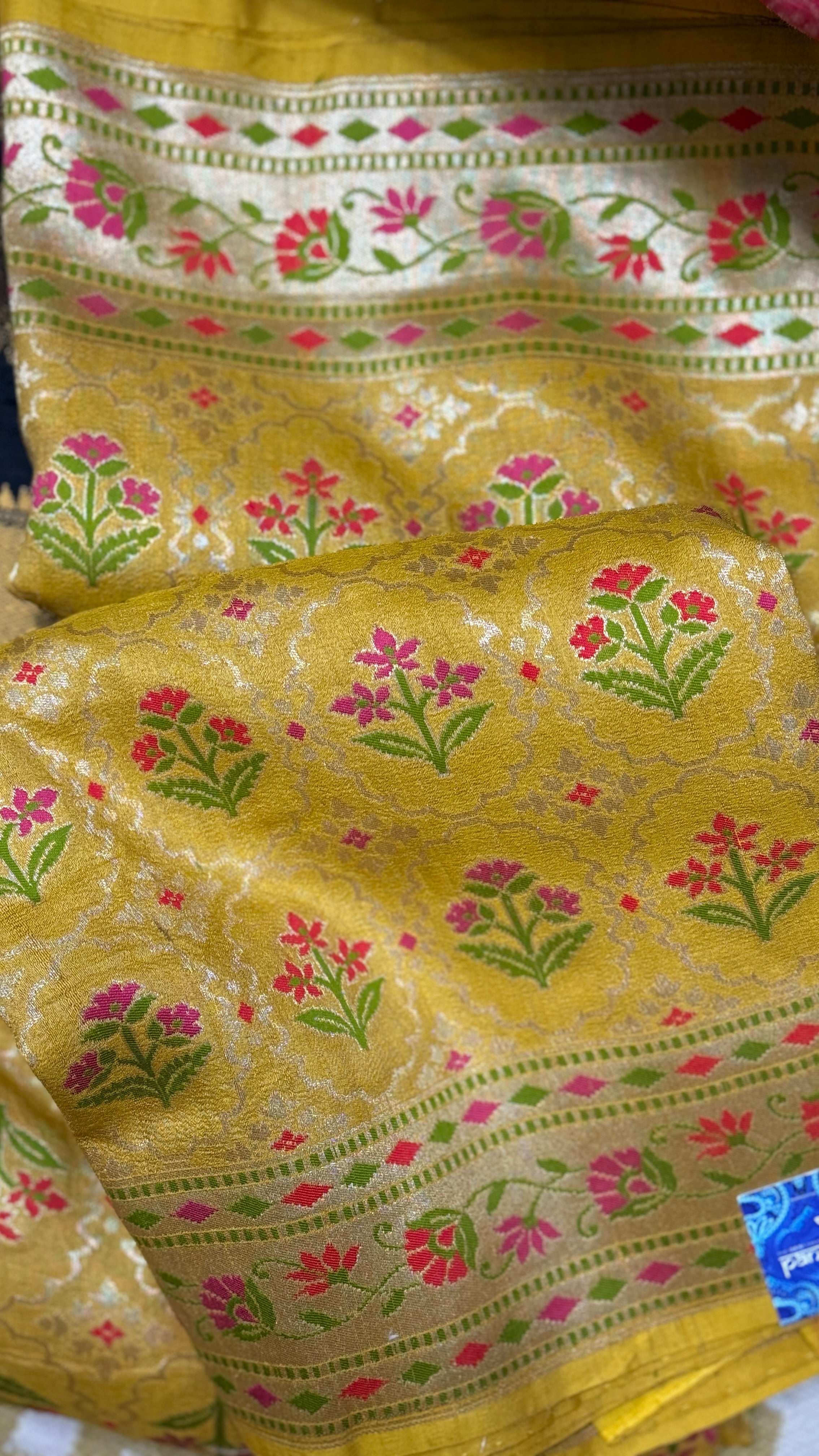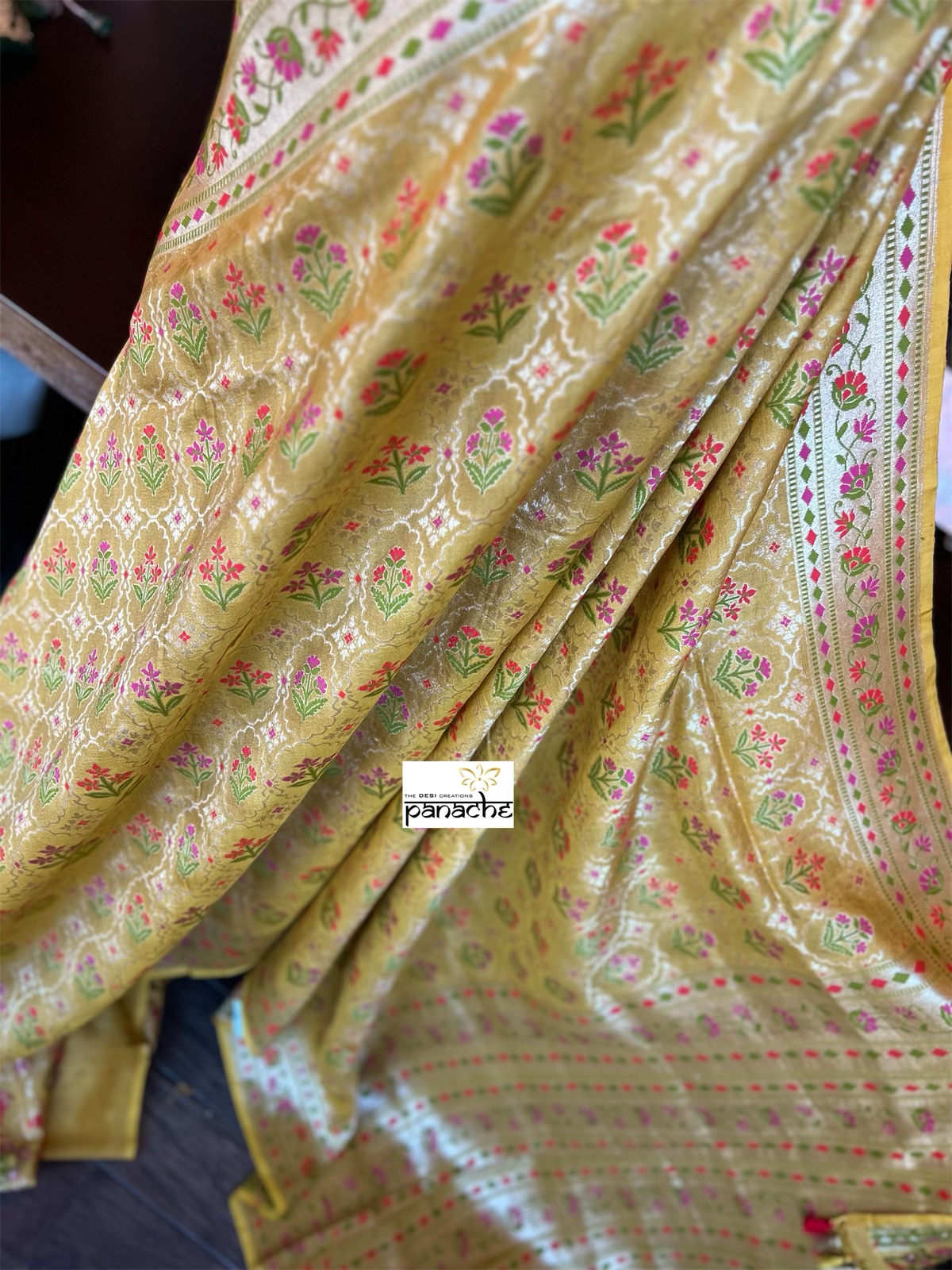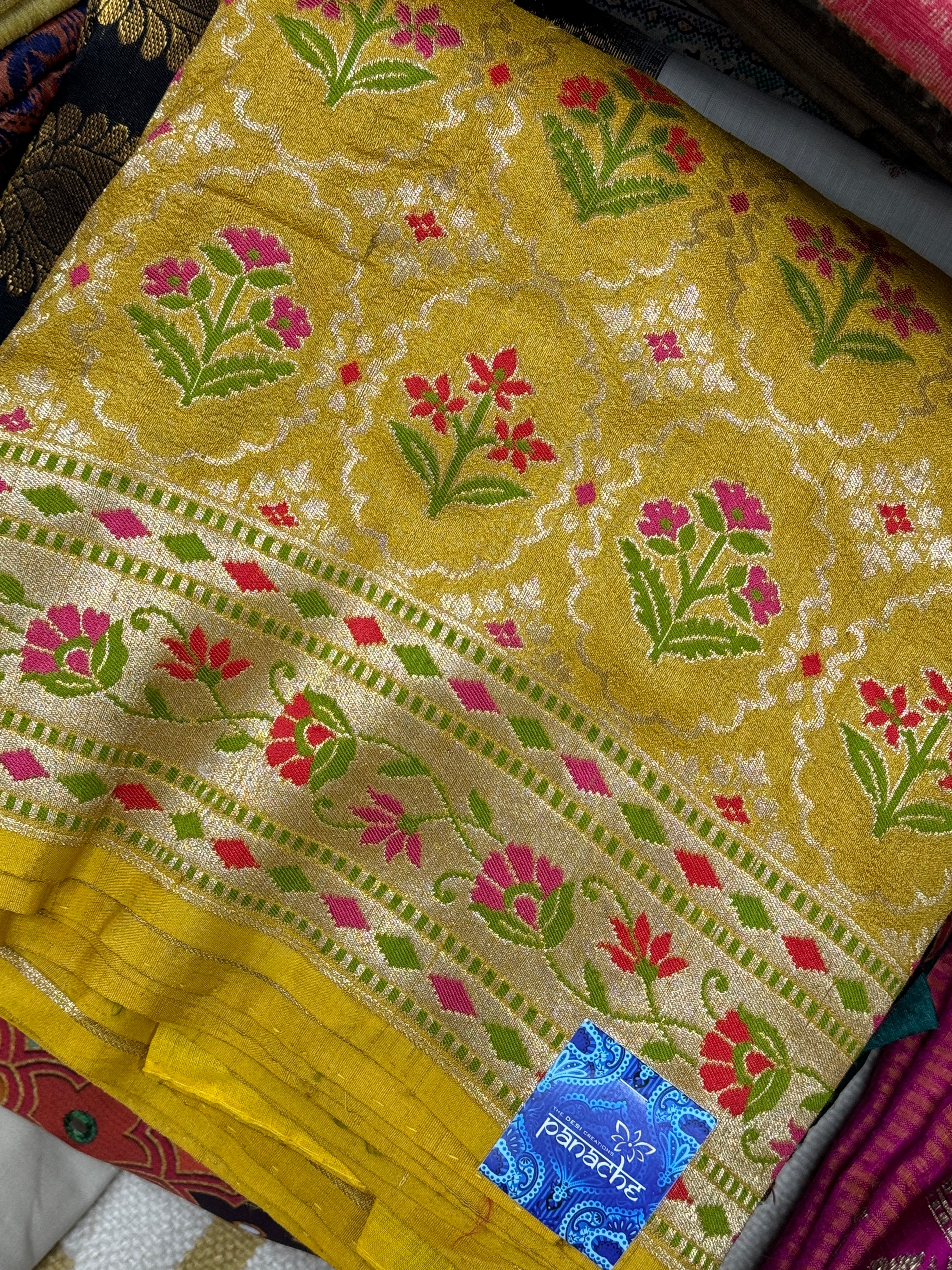 Pure Tussar Silk Banarasi- Yellow Meenakari Paithani