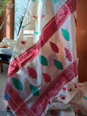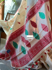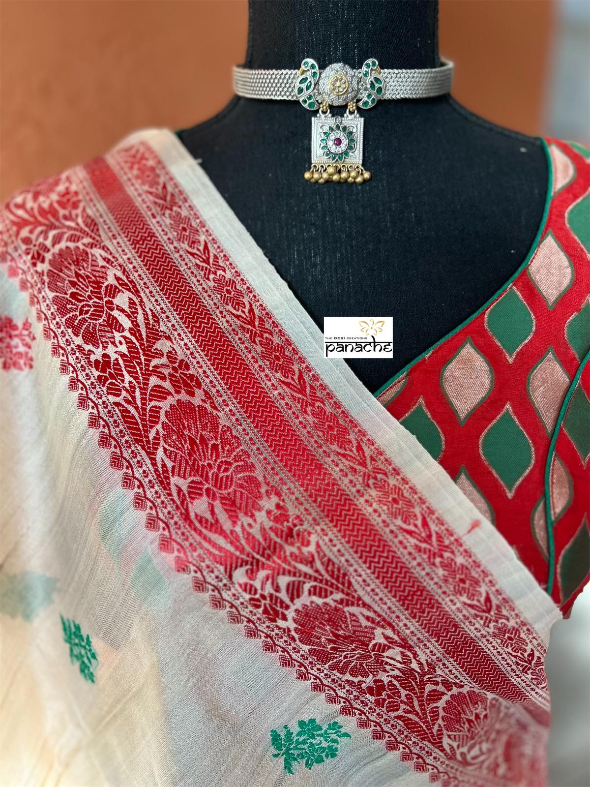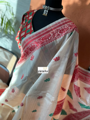 Design : Resham woven motifs on beige body, Woven border and pallu.