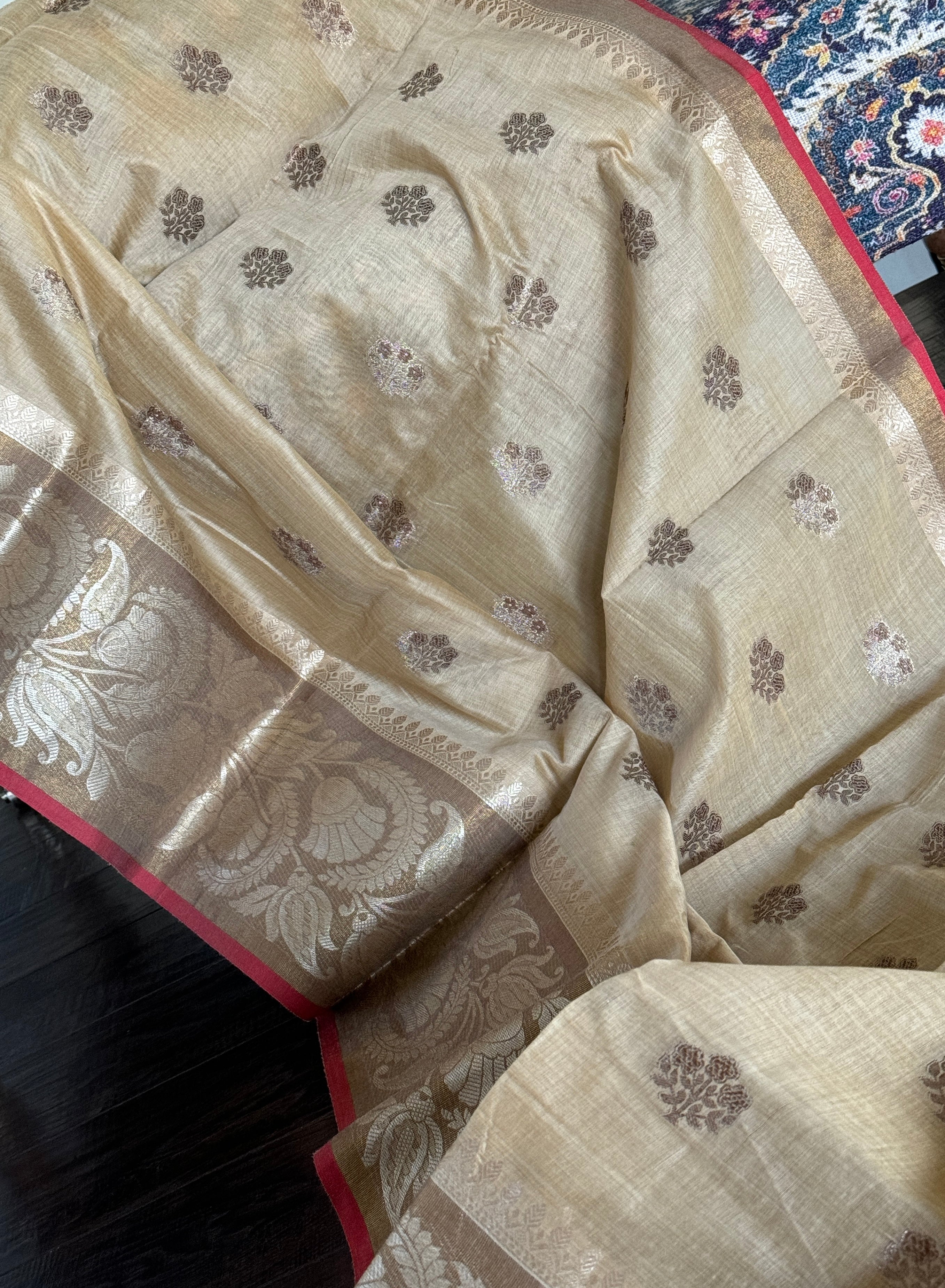 Color: Biscuit Tan color, Red, Golden Zari