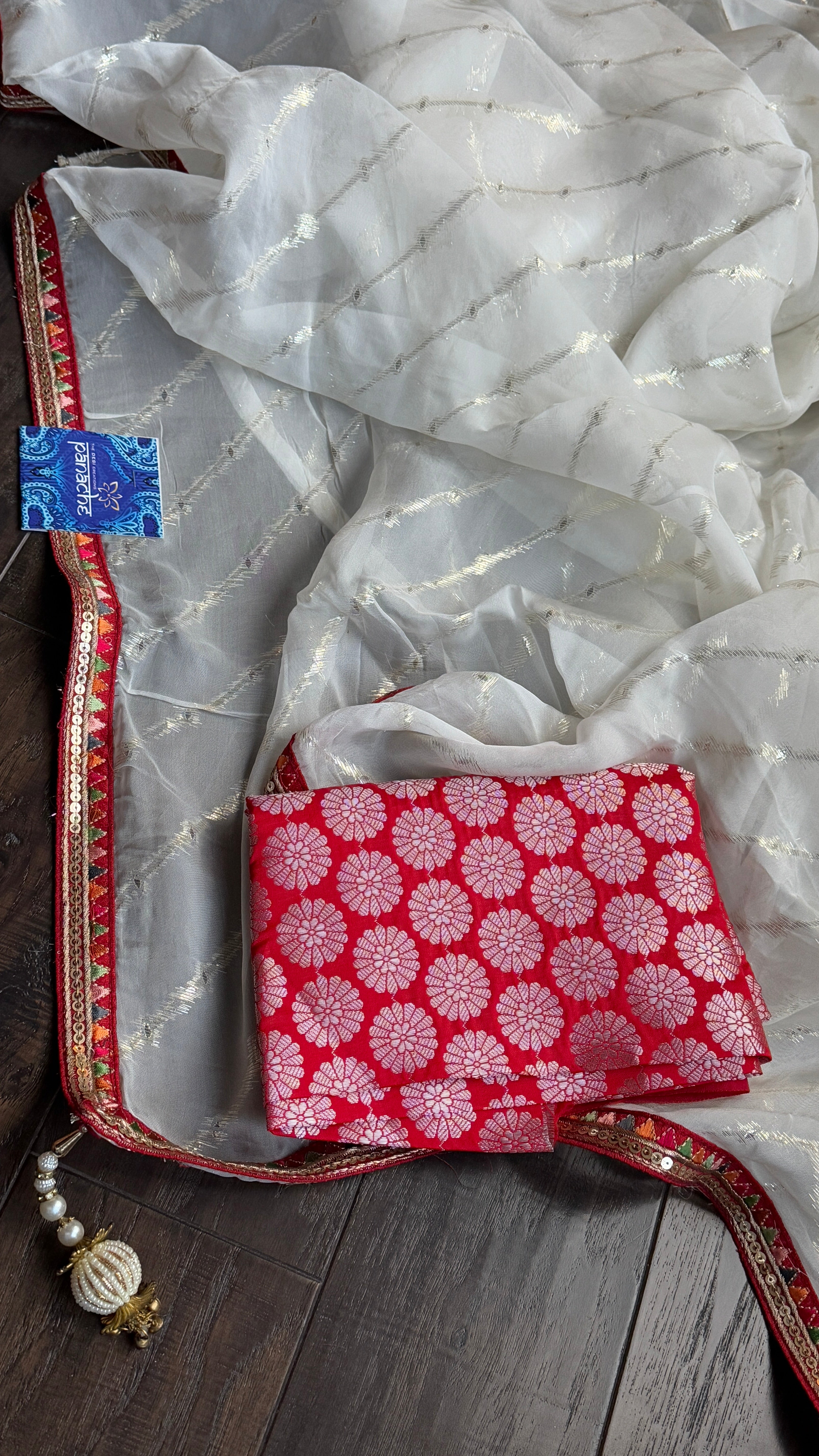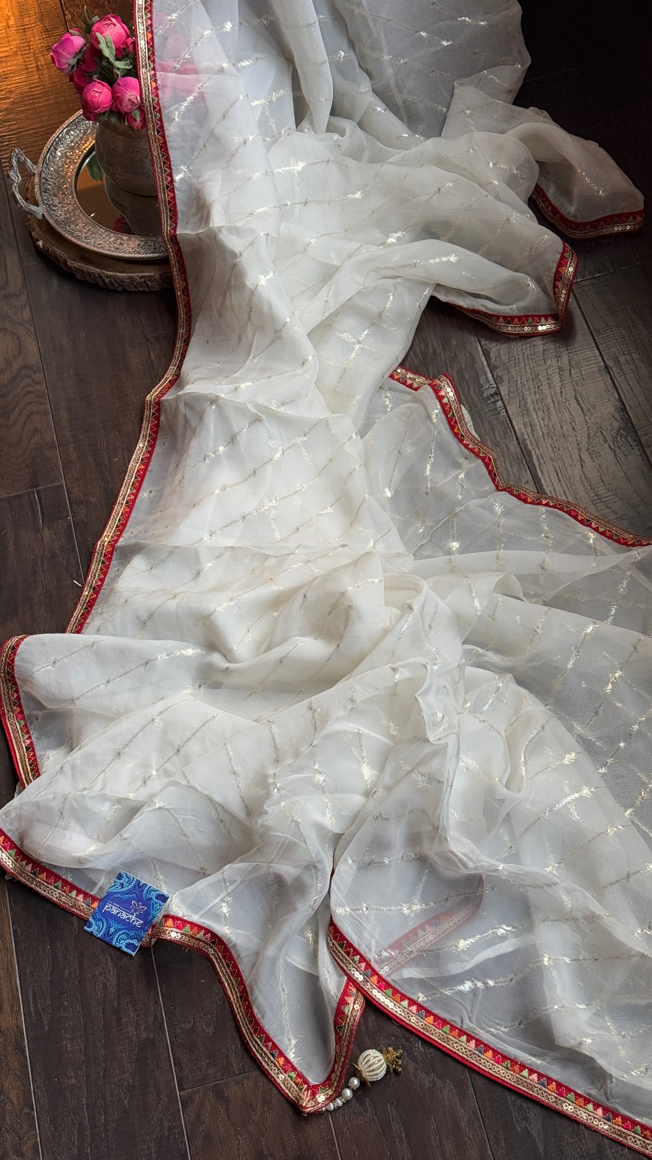 Design : Body is plain off White with Zari leheriya pattern, designer gota Patti