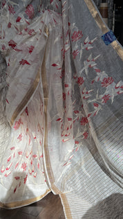 Design : White with resham Embroidered Meenakari motifs, gold Zari border and pallu