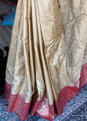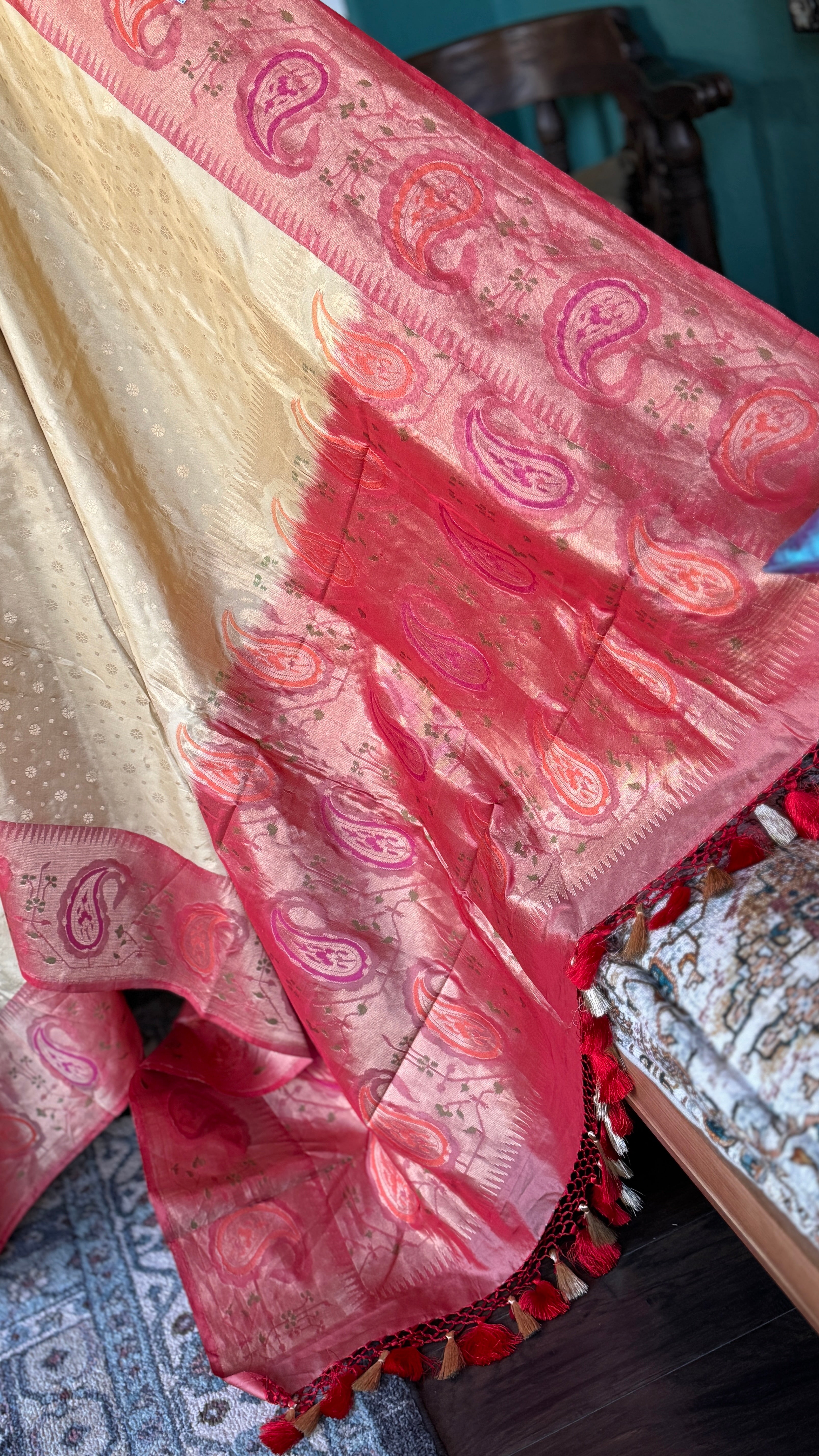 Design : Paithani meenakari woven border and pallu, body is beige/Golden Sandalwood with Zari intricate weaves