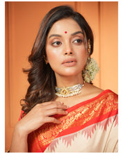 Color: Tan beige, Red, black, antique Gold and Silver Zari