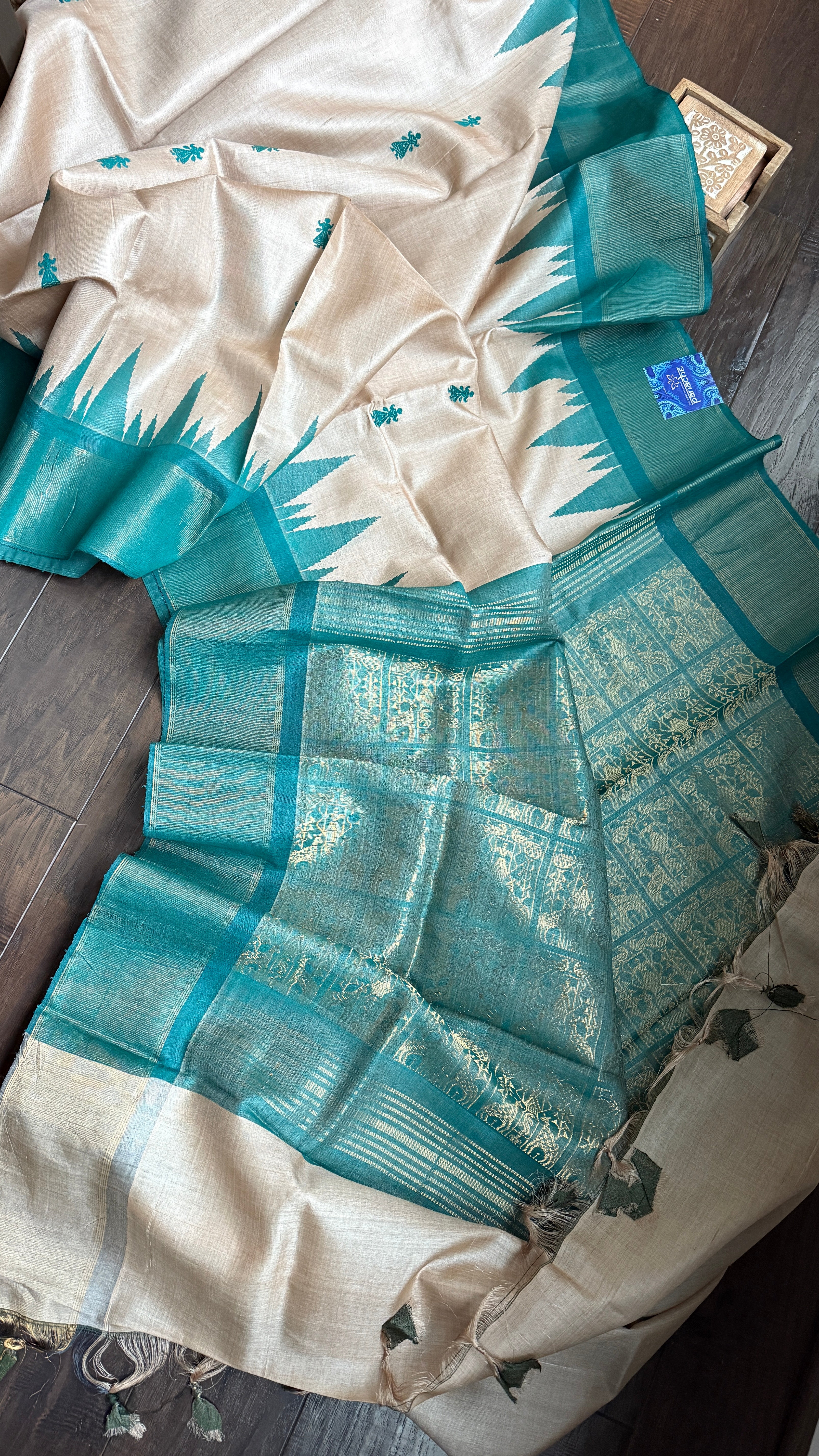 Design : Beige color body with Zari woven palla. Motifs on body. Zari woven temple border.