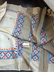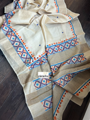 Pure Tussar Silk Lambani - Cream Hand Embroidered