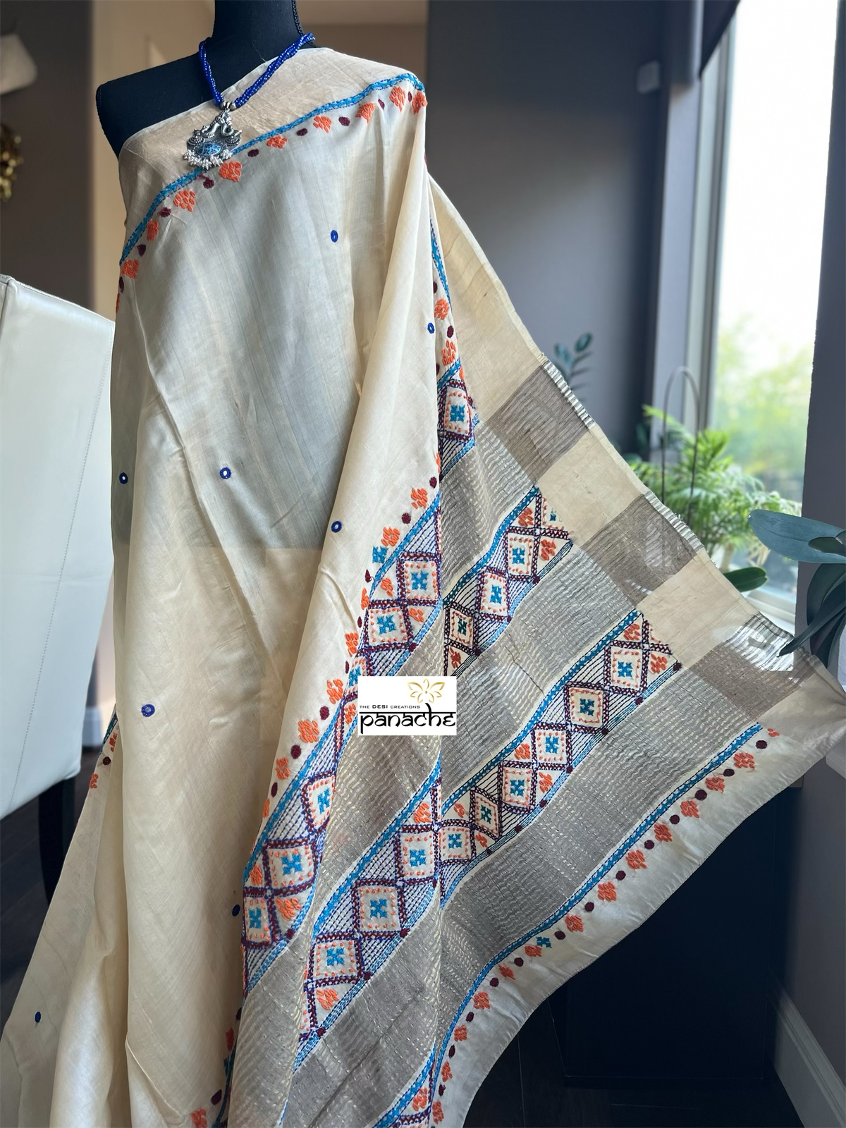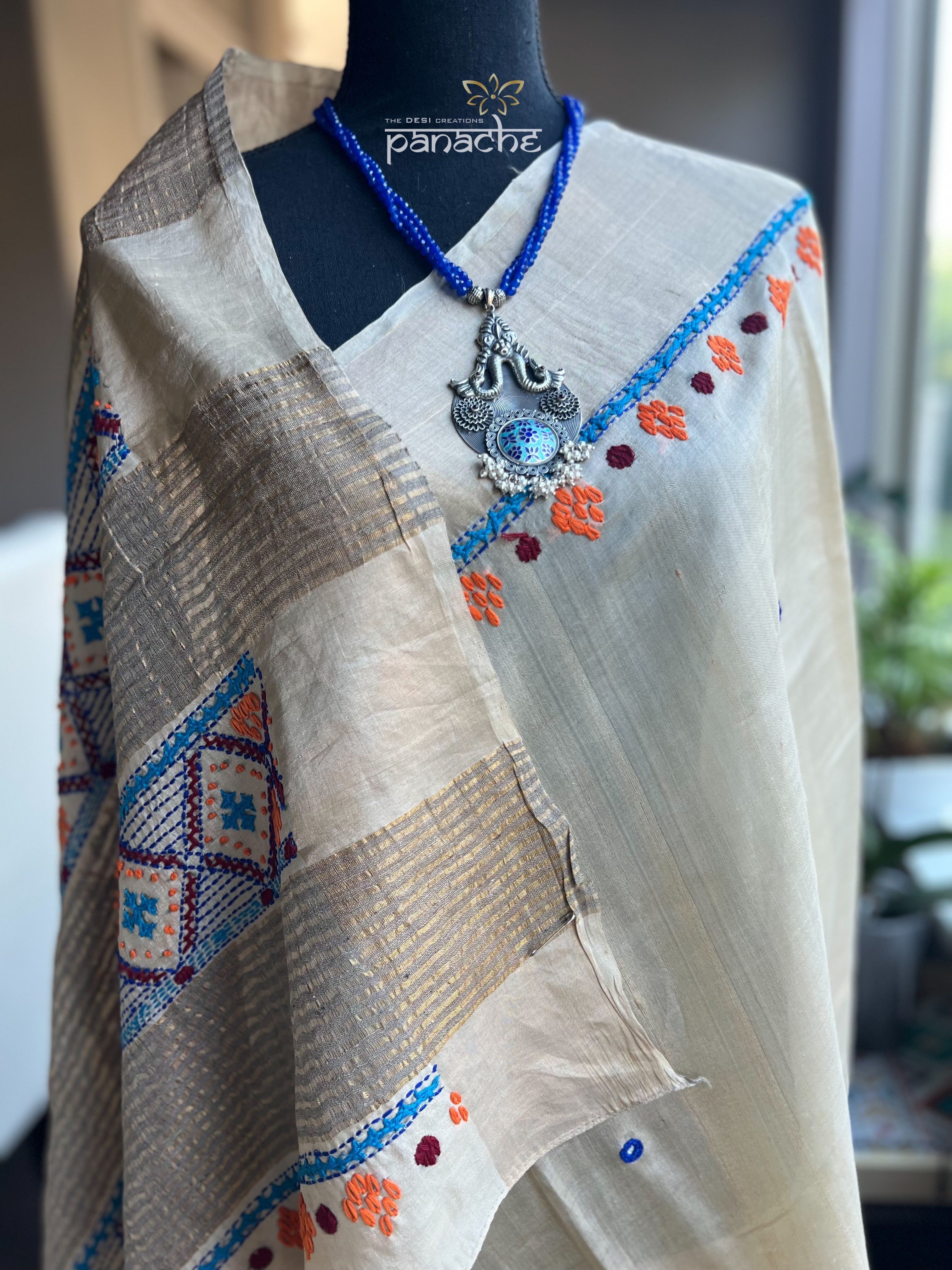 Description: Handwoven Lambani embroidery on tussar silk.