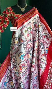 Design: Elbow Sleeves, Back opening, multi color resham and Zari woven on body in Bandhej pattern