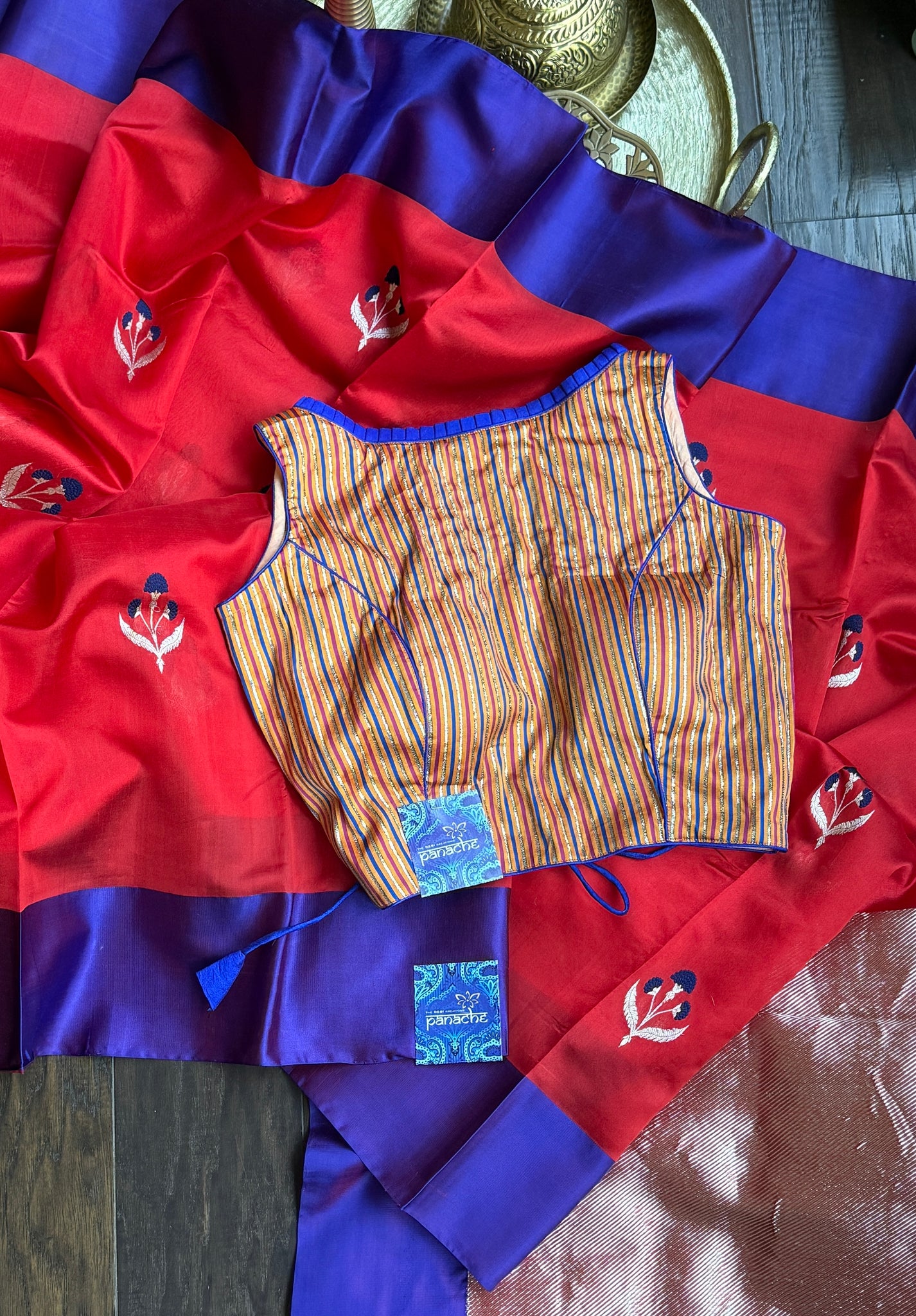 Designer Blouse - Orange Royal Blue
