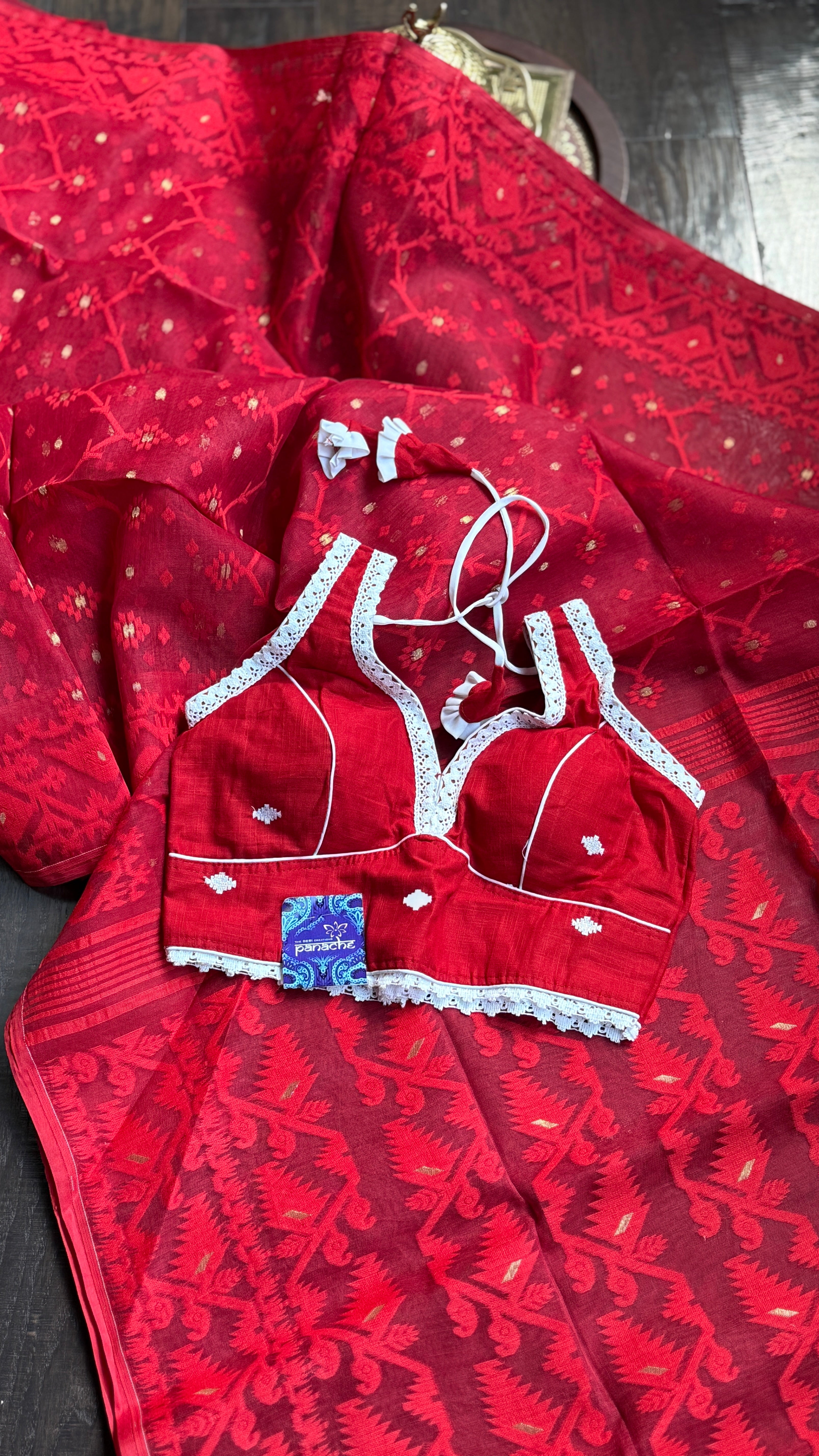 Designer Blouse - Red Jamdaani Lace Woven