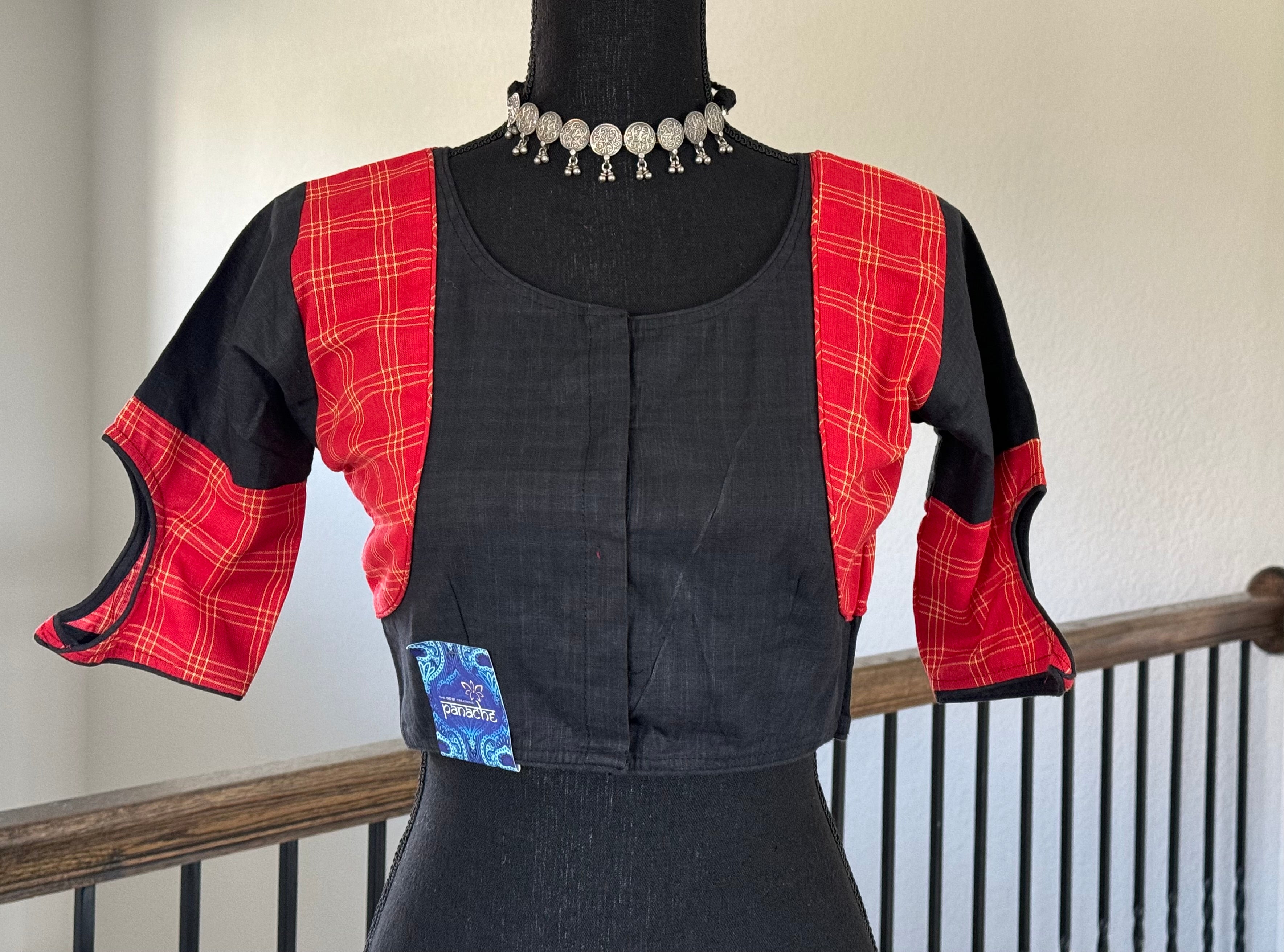 Designer Cotton Blouse - Black and Red