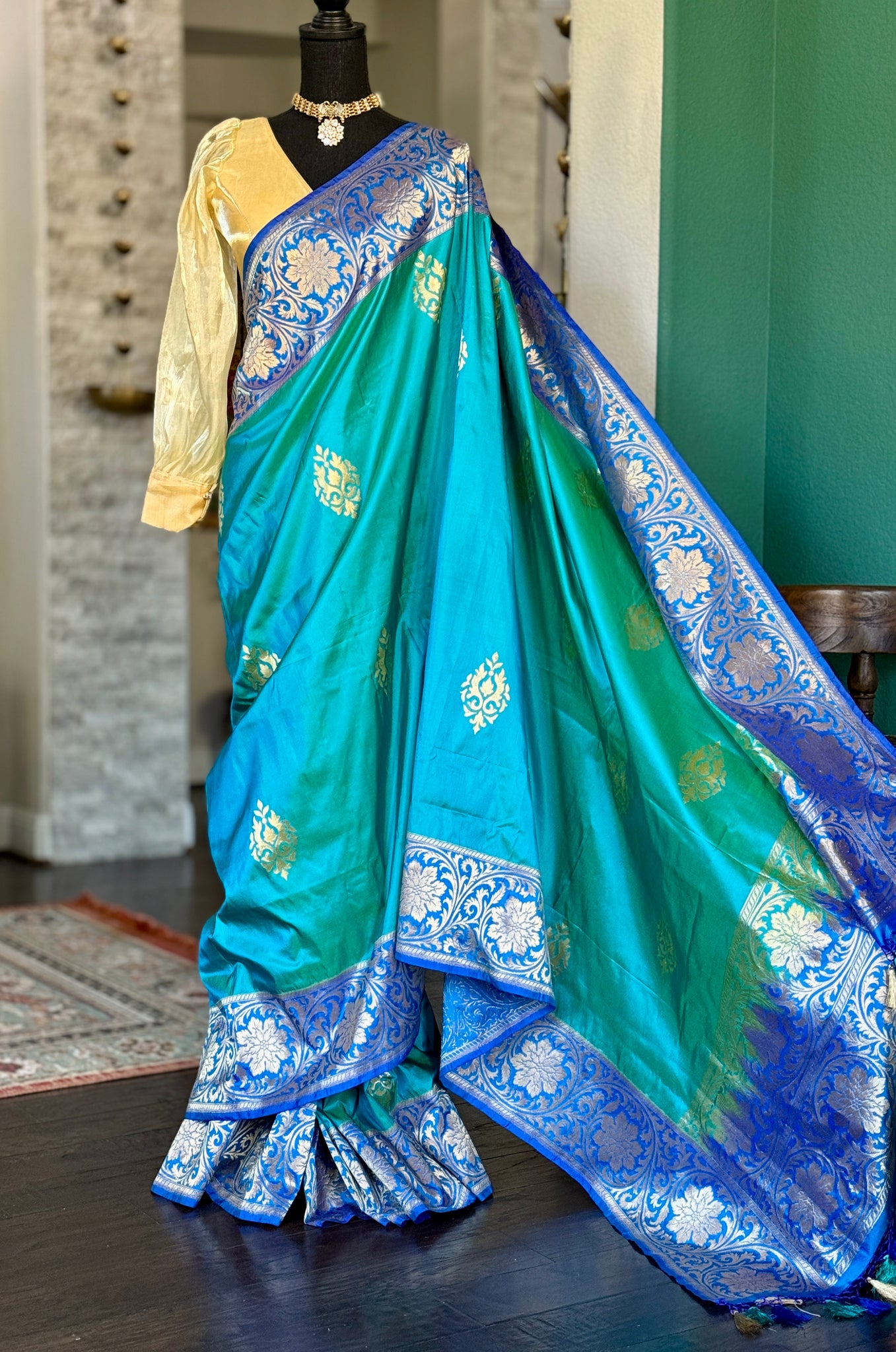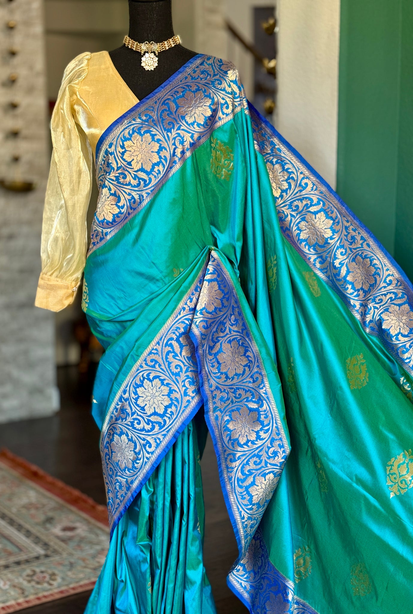 Pure Silk Banarasi - Sea Green Dual Shaded