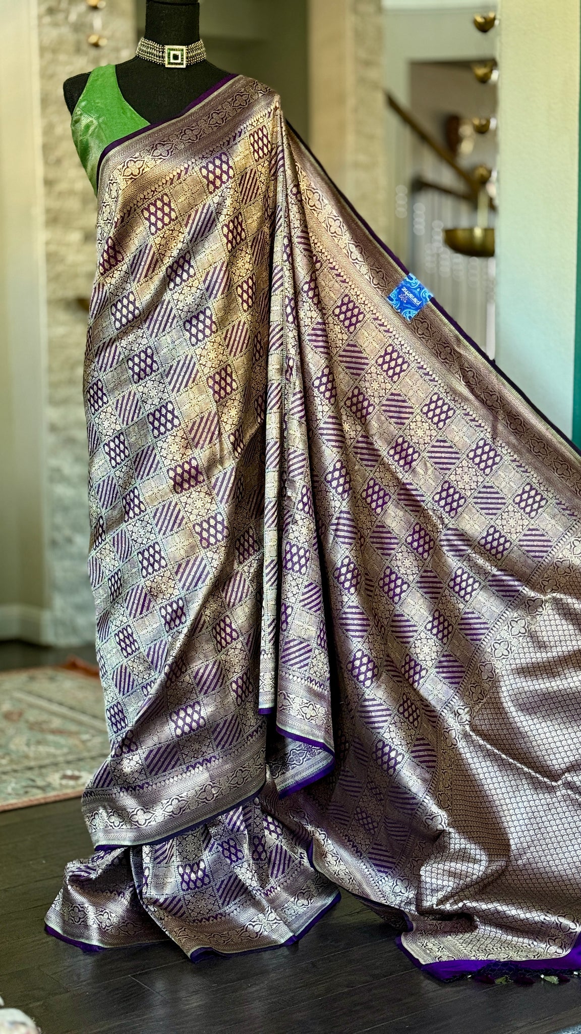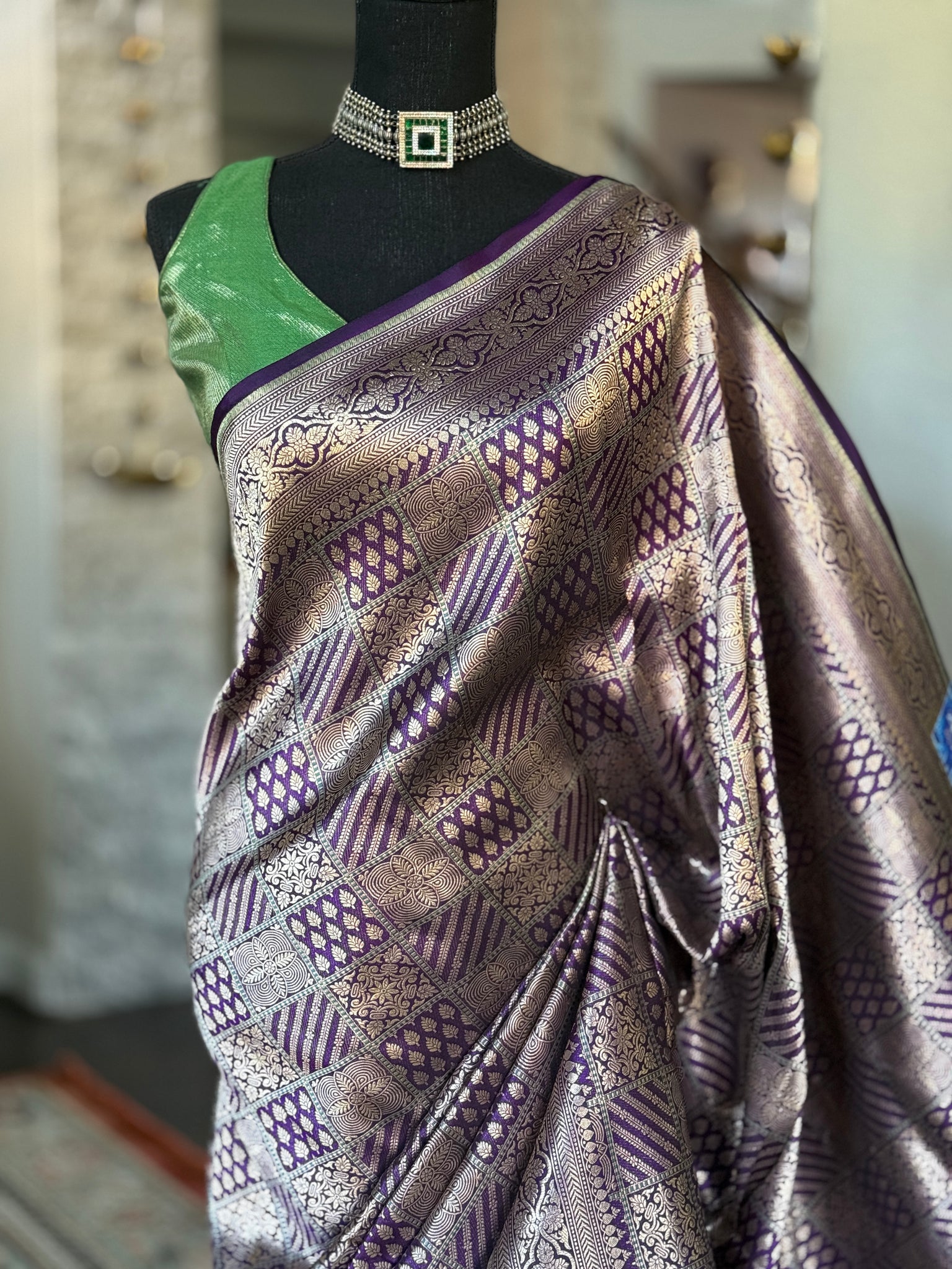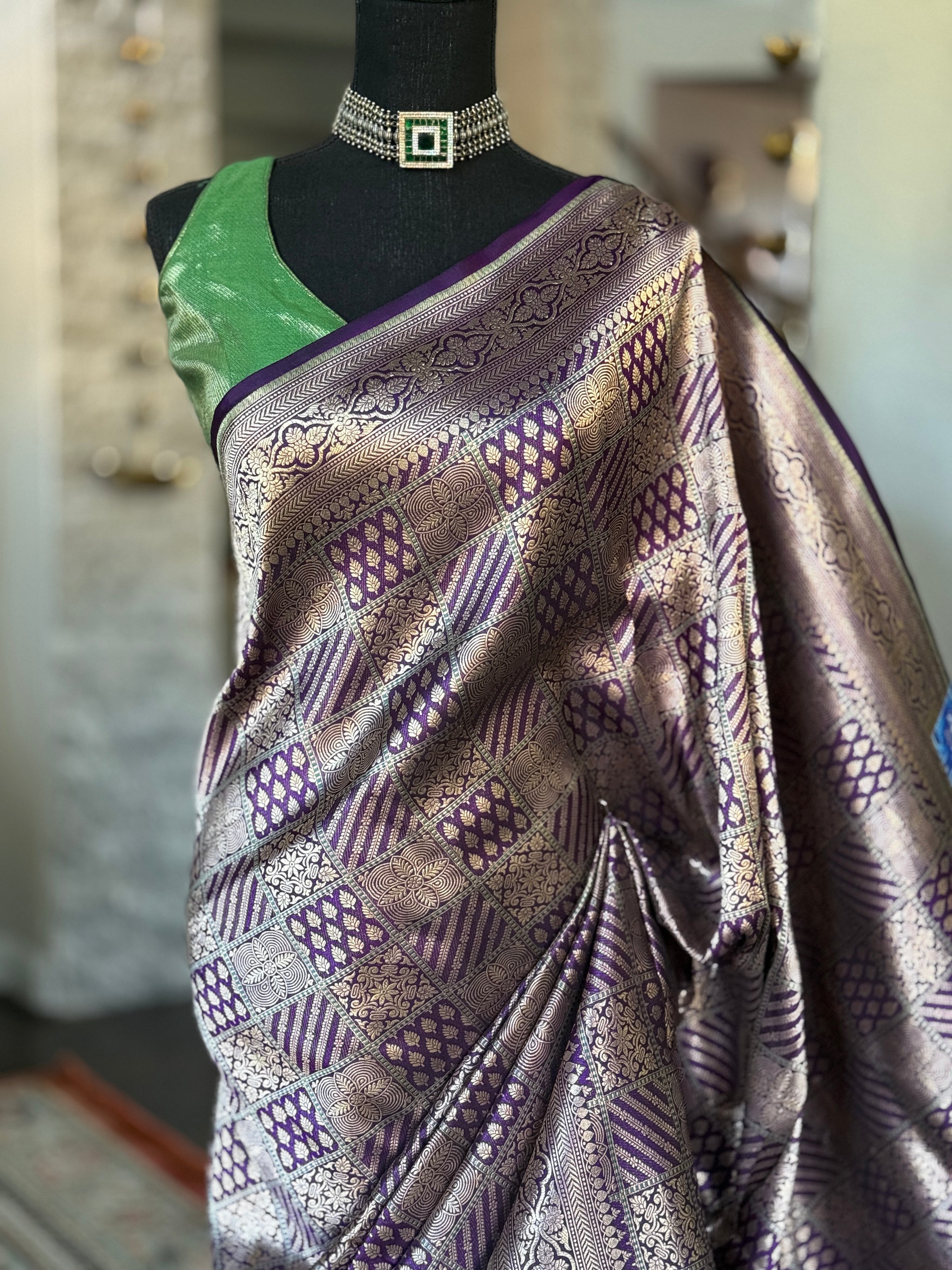Pure Silk Katan Banarasi- Purple Antique Gold Zari