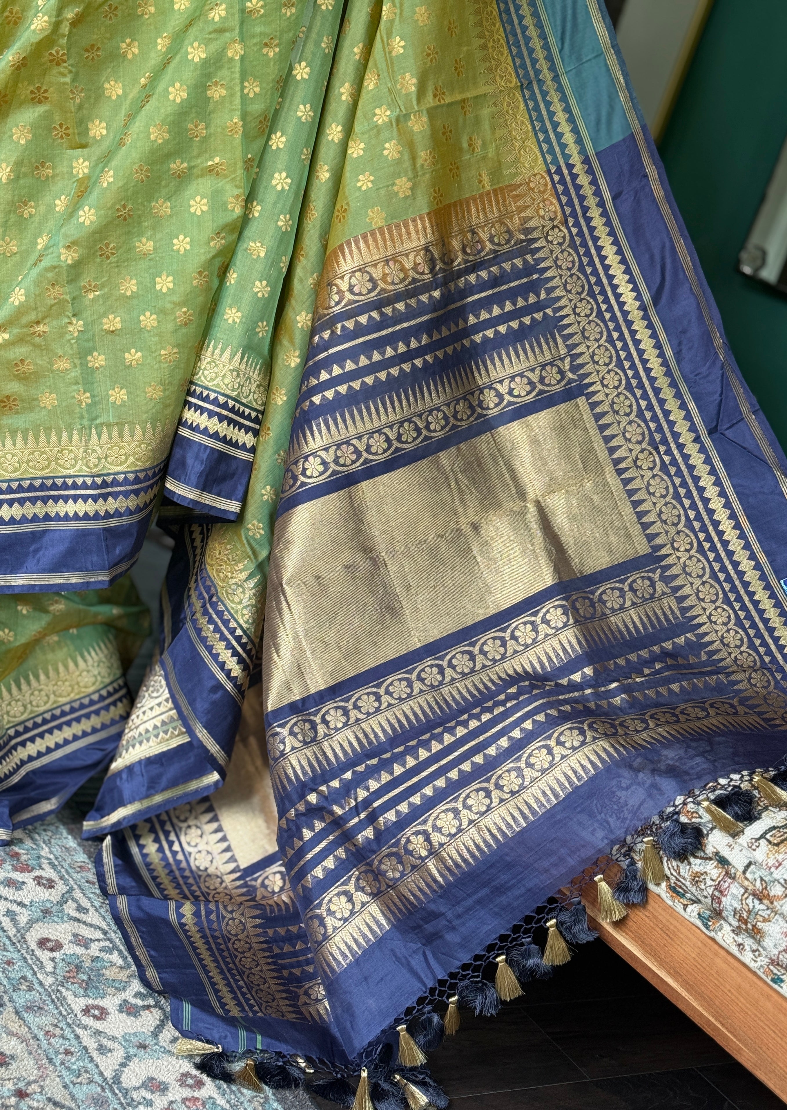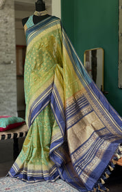 Organza Katan Silk Banarasi - Pista Green Blue Kadwa