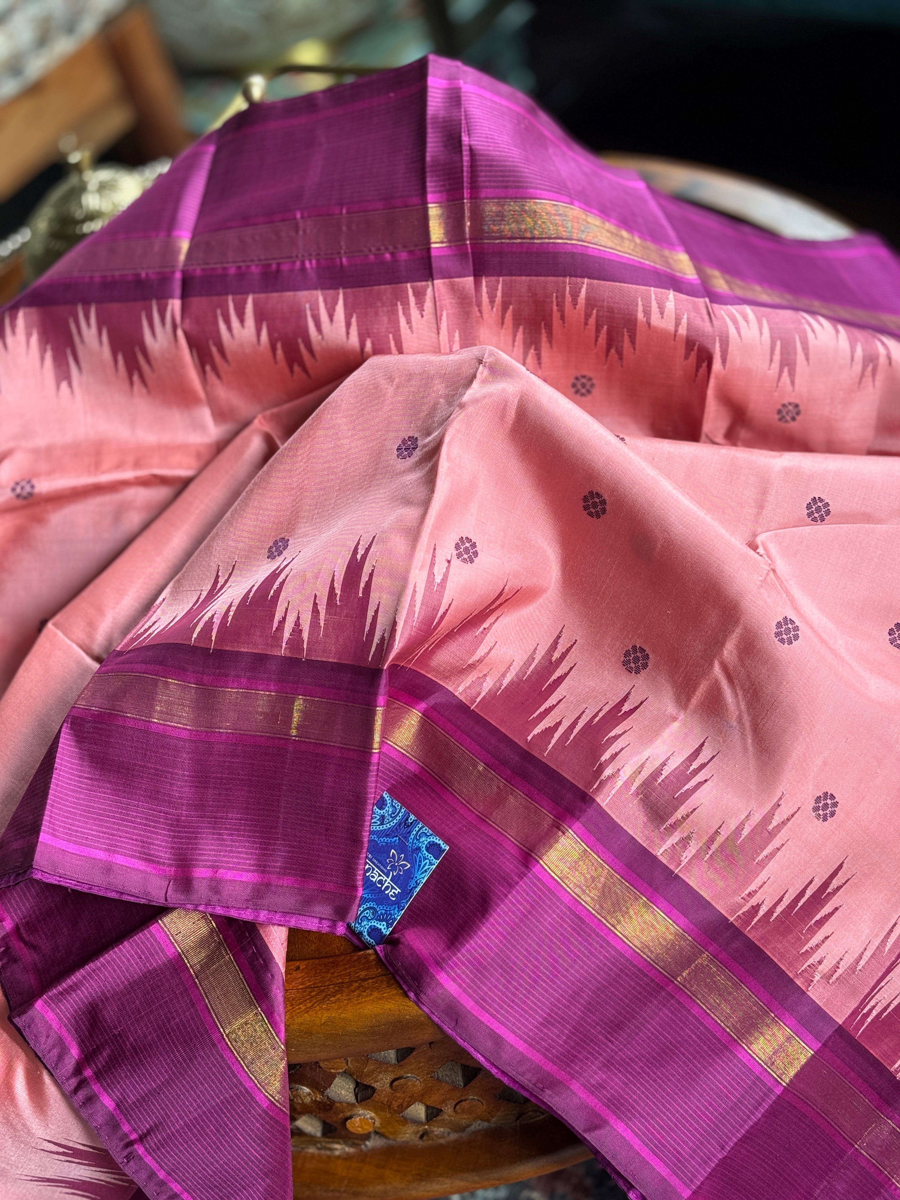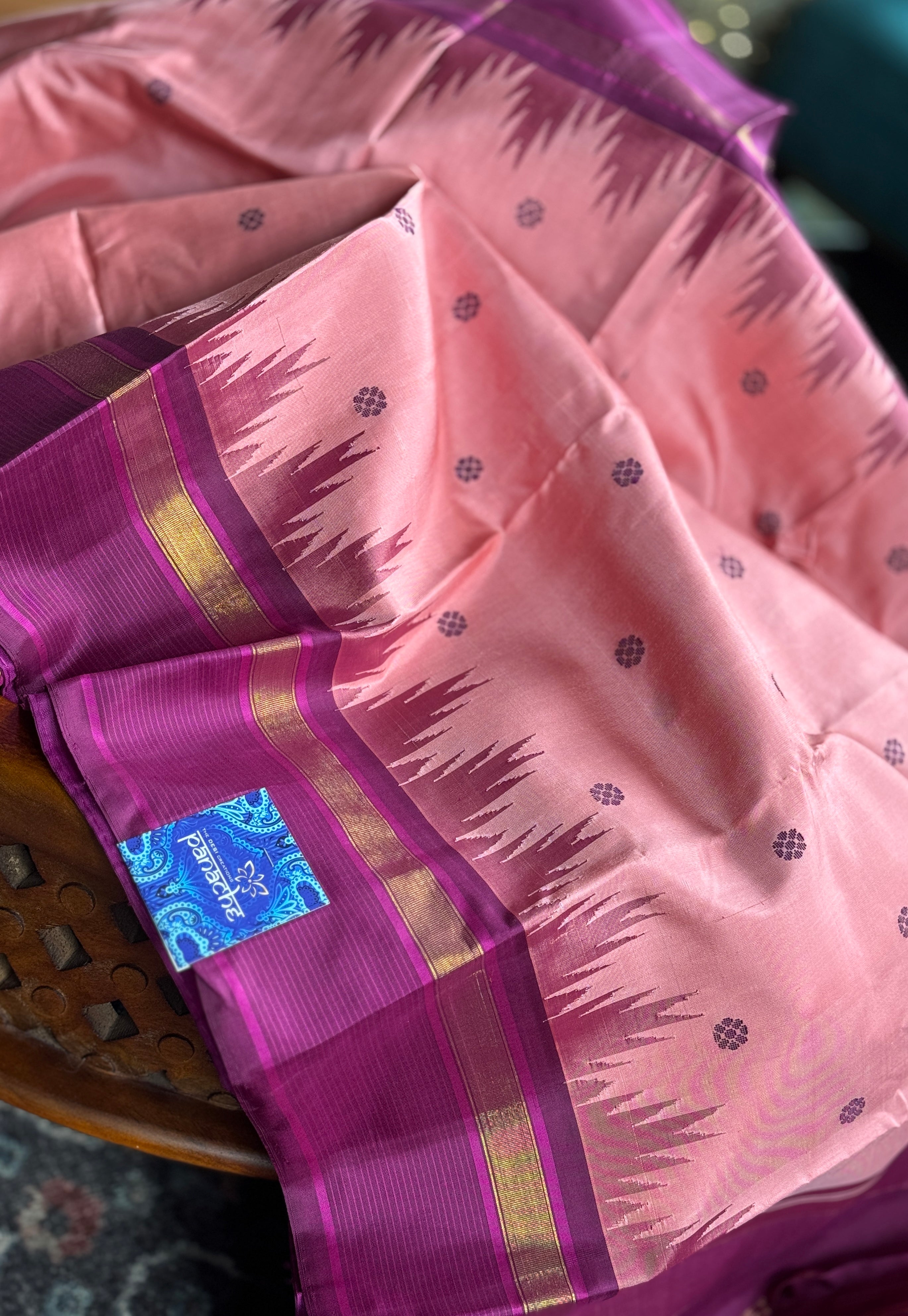 Color: Pink, purple, antique Golden Zari