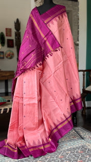 Pure Silk Korvai Kanjivaram - Pink Purple Woven