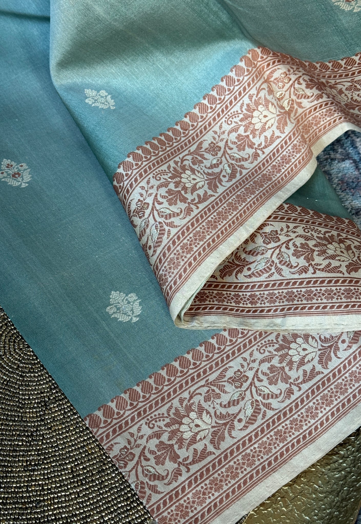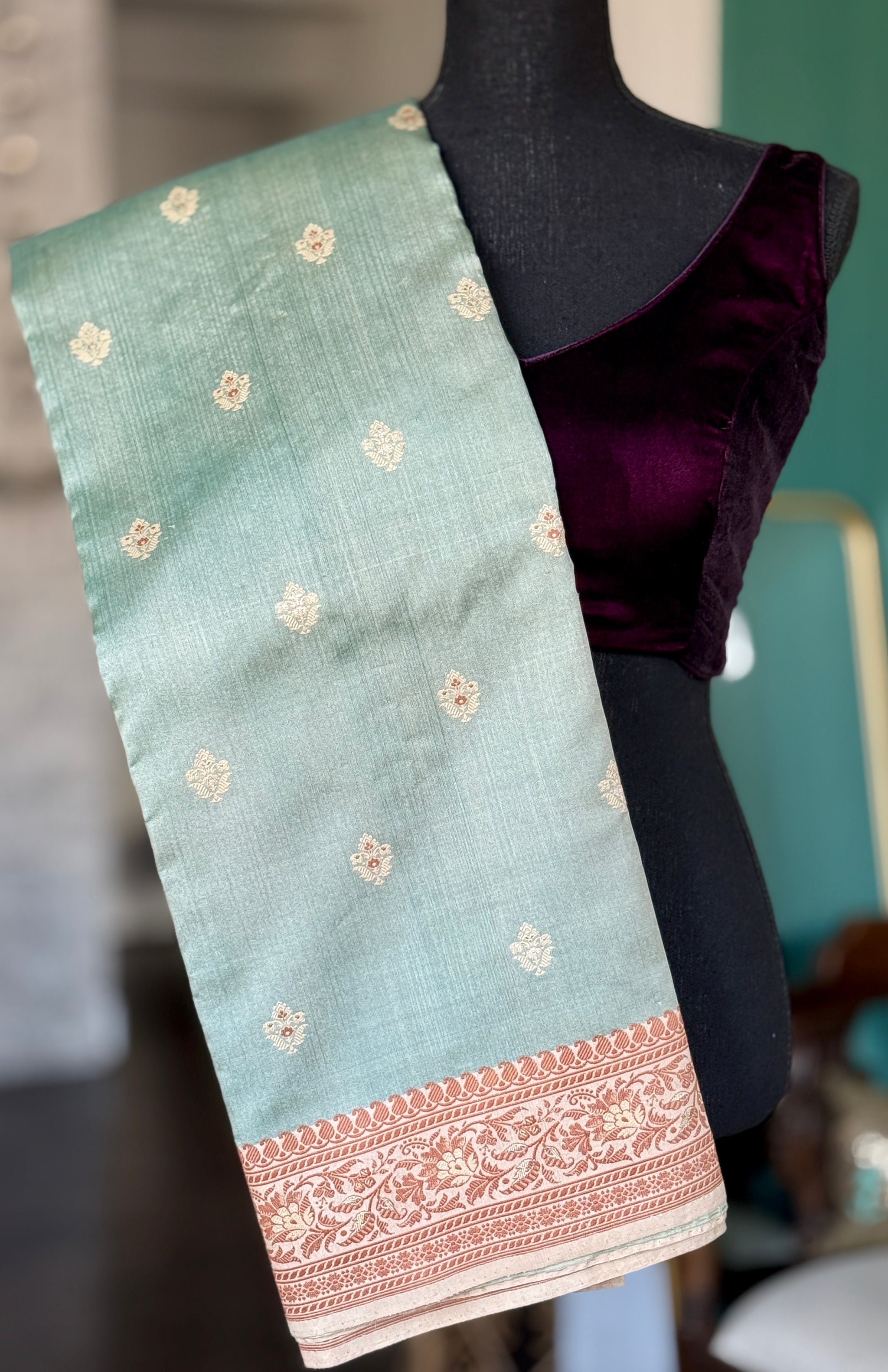 Color: Light Grey green, light rust, Tussar color