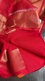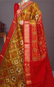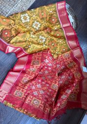 Pure Cotton Silk Ikat - Yellow Red