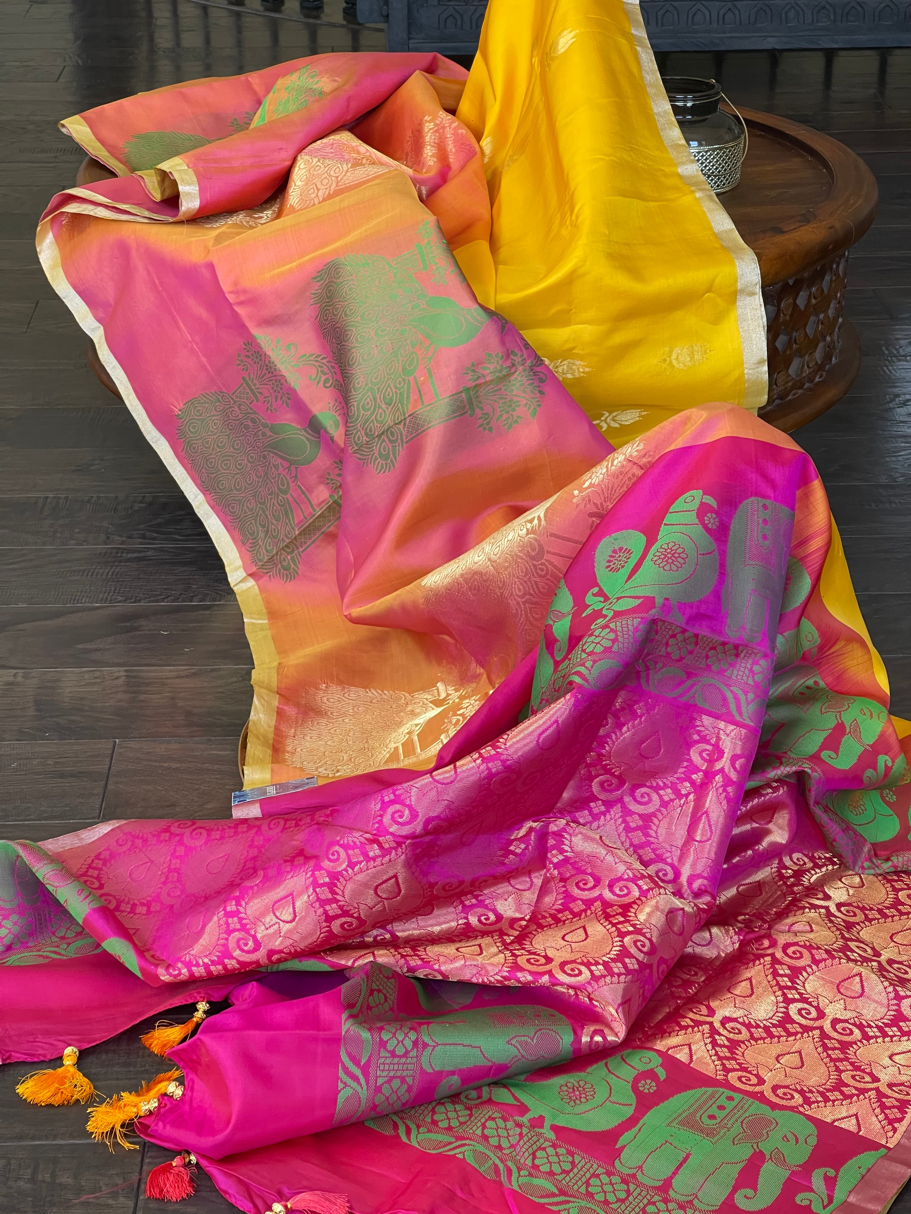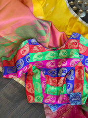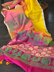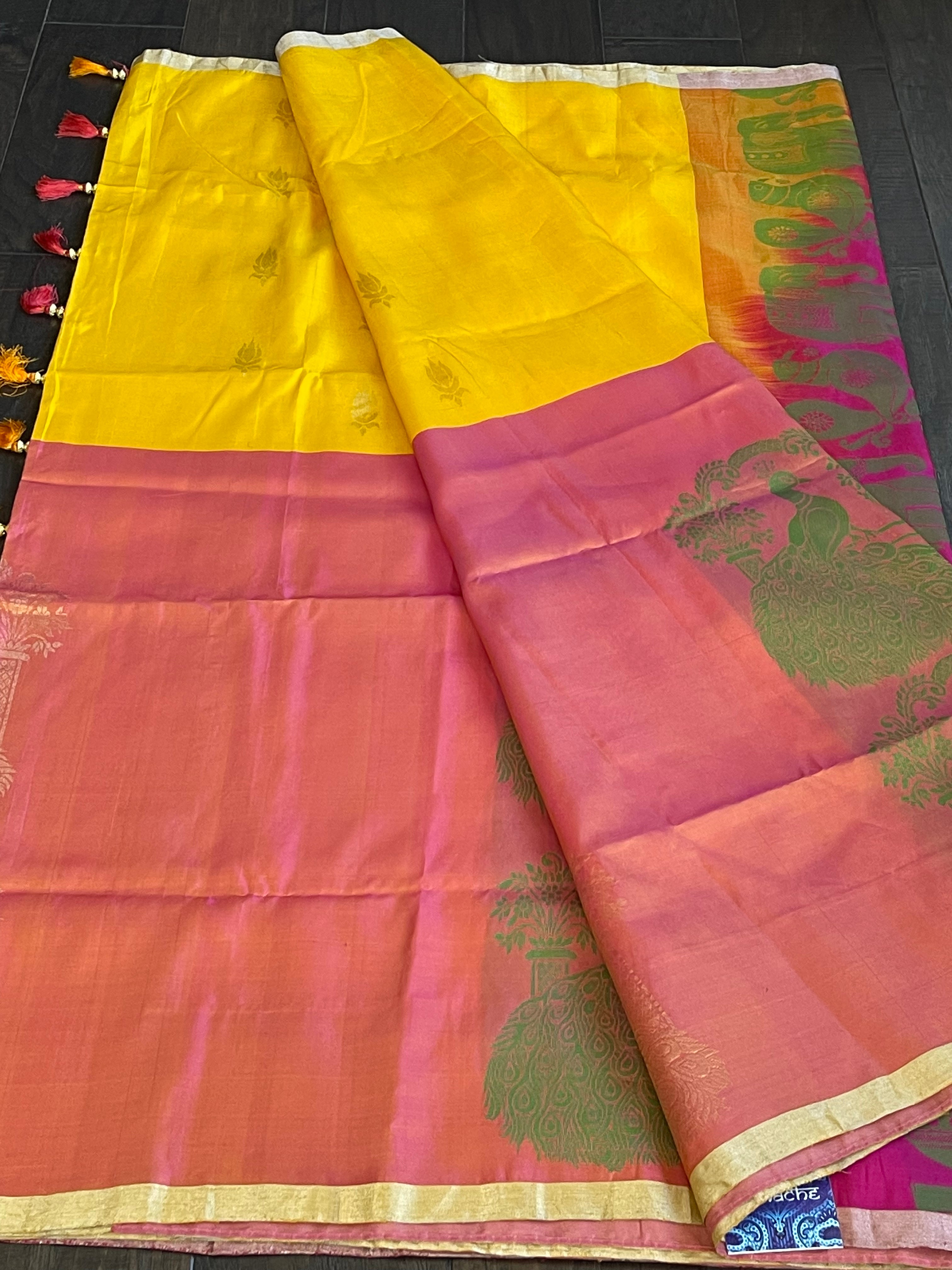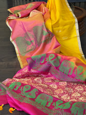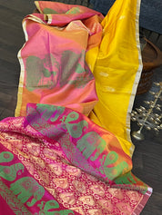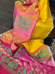 Color: Yellow, Peach, magenta Pink, antique Golden Zari