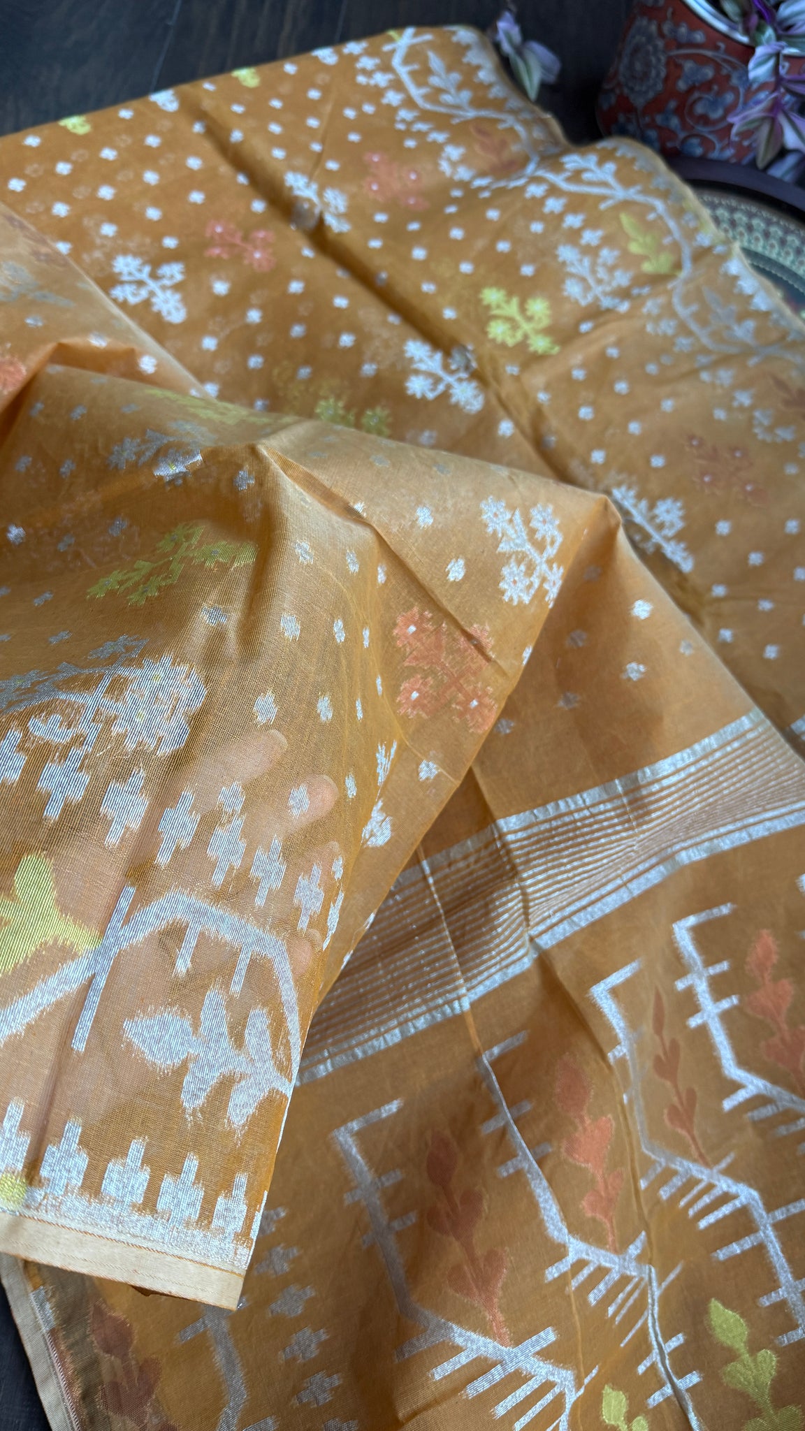 Dhakai Jamdani - Light Terracotta Silver Zari Woven
