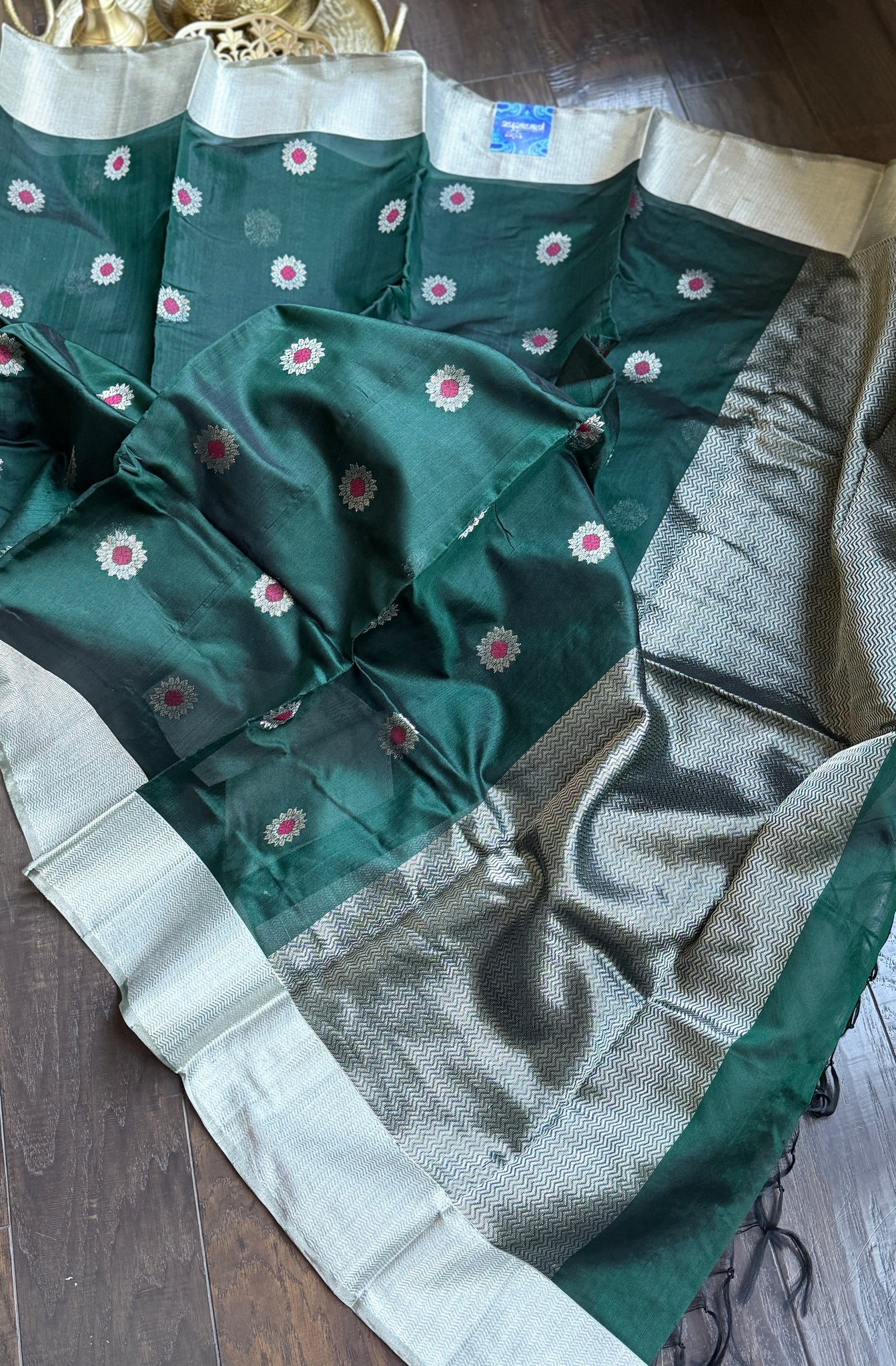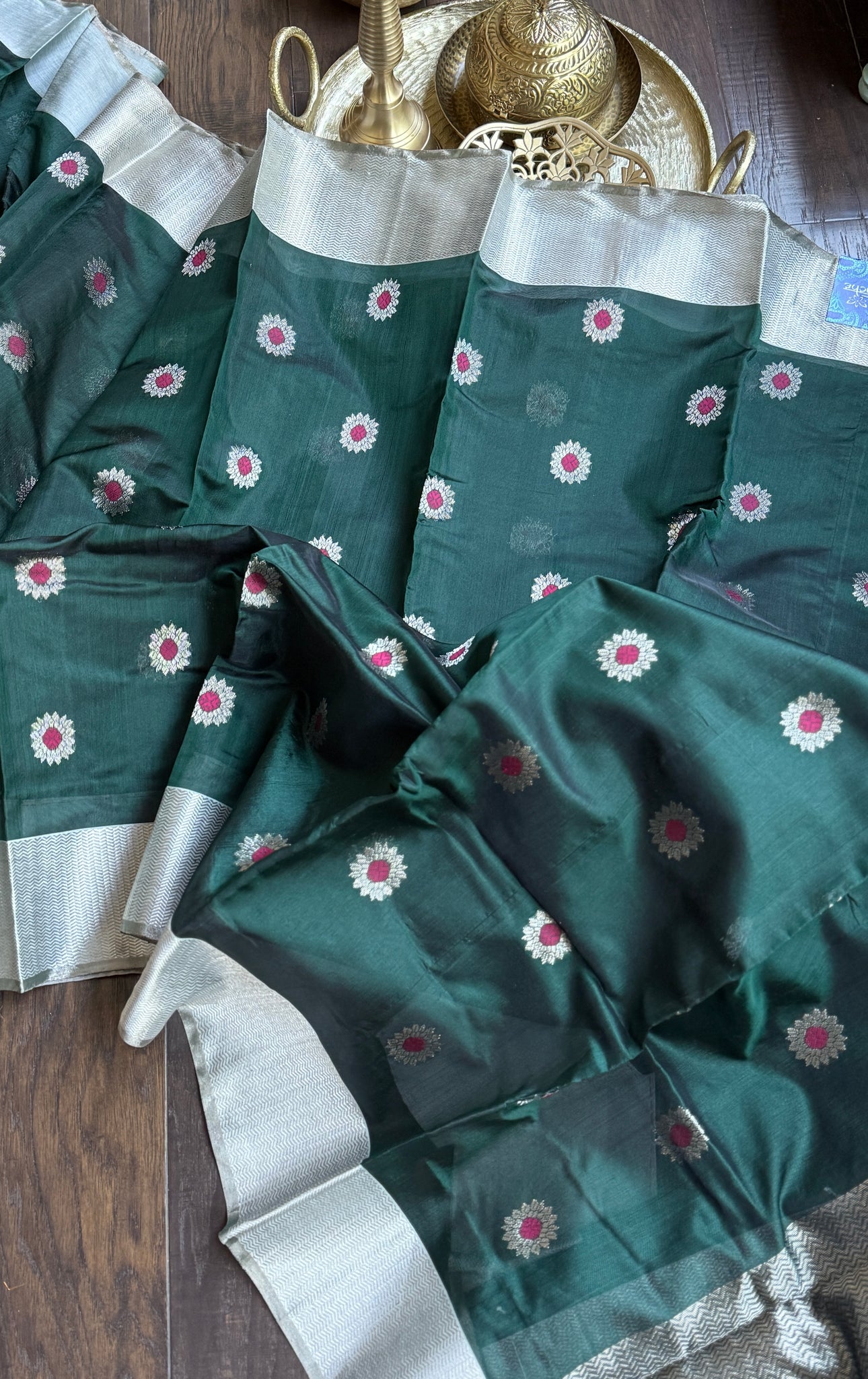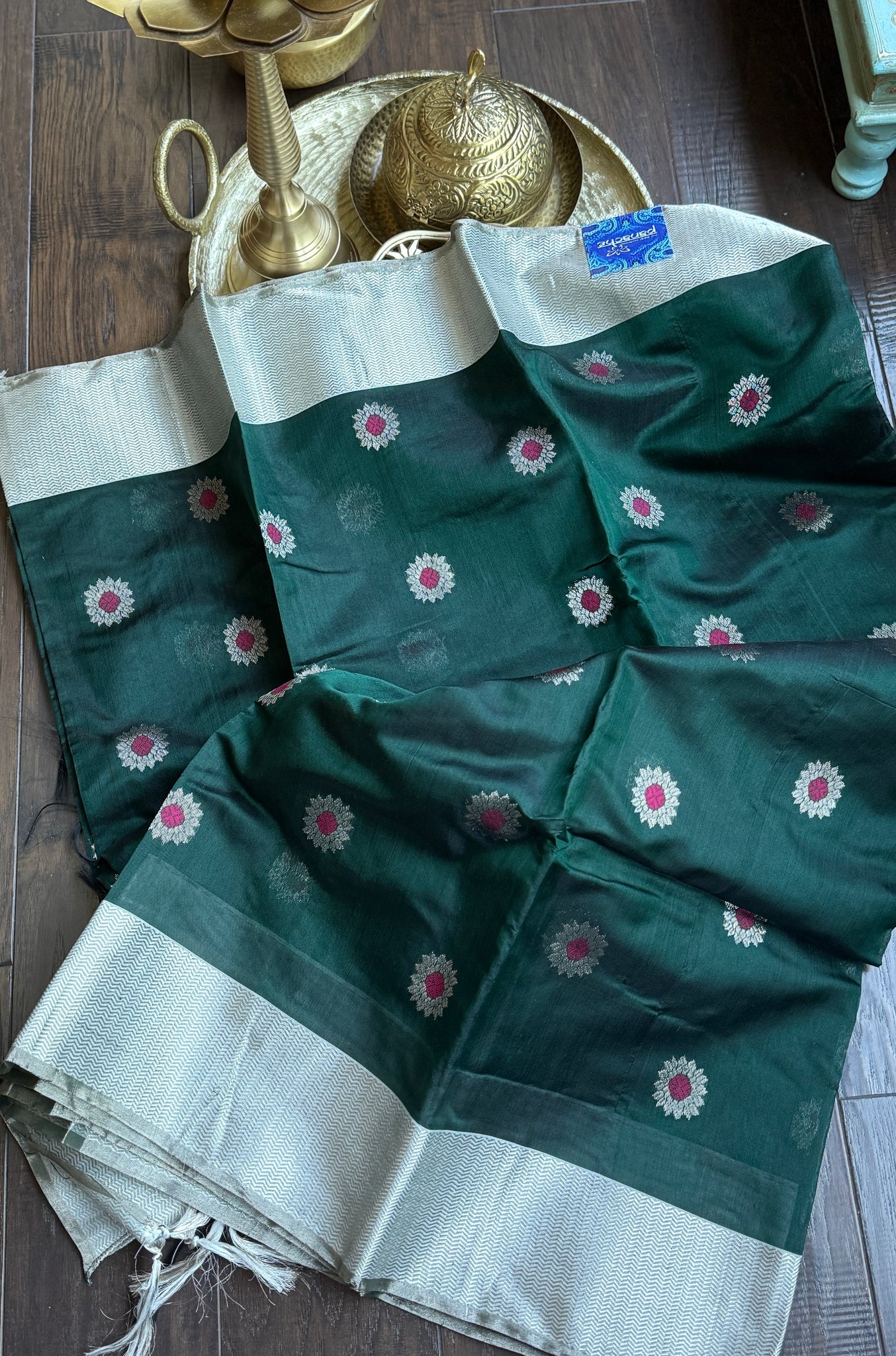 Pure Chanderi Pattu Silk - Dark Teal Green Meenakari