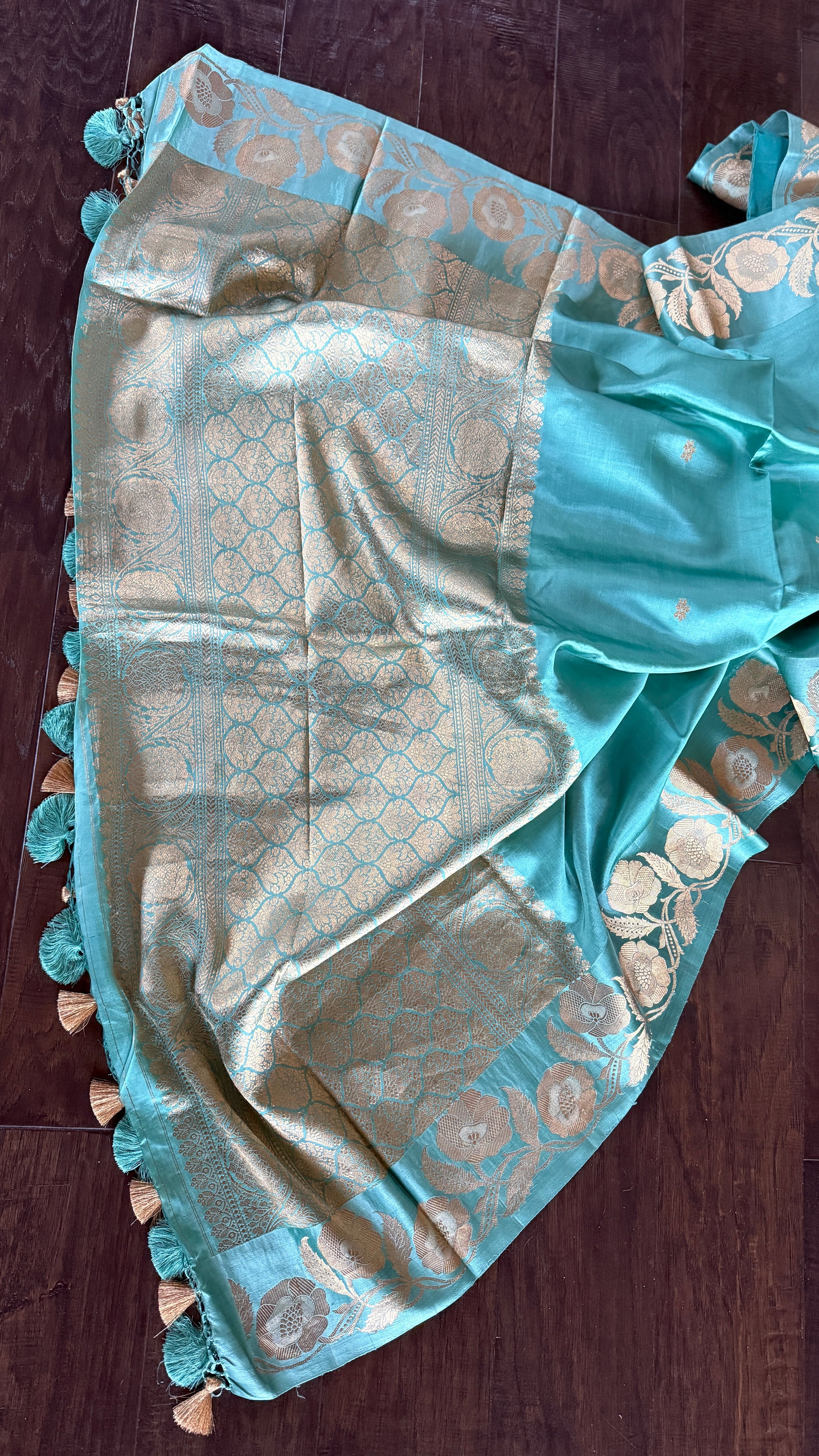 Design : Gold zari woven motifs on body and border is golden Zari. Zari woven Palla.