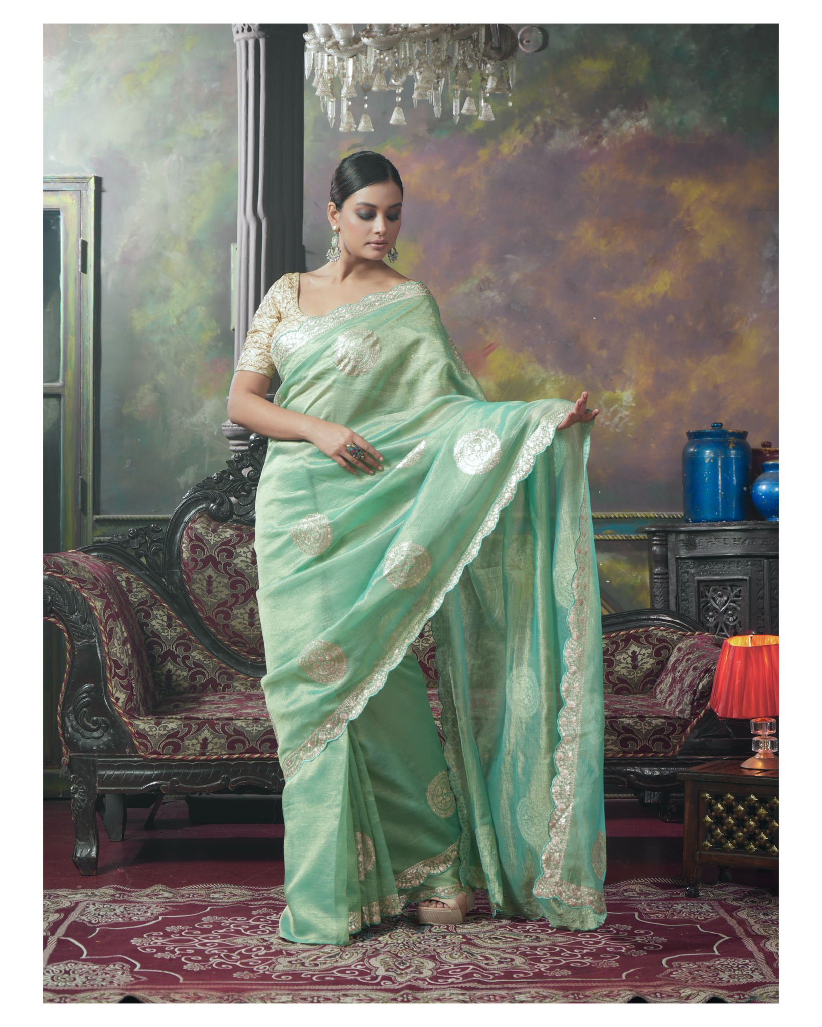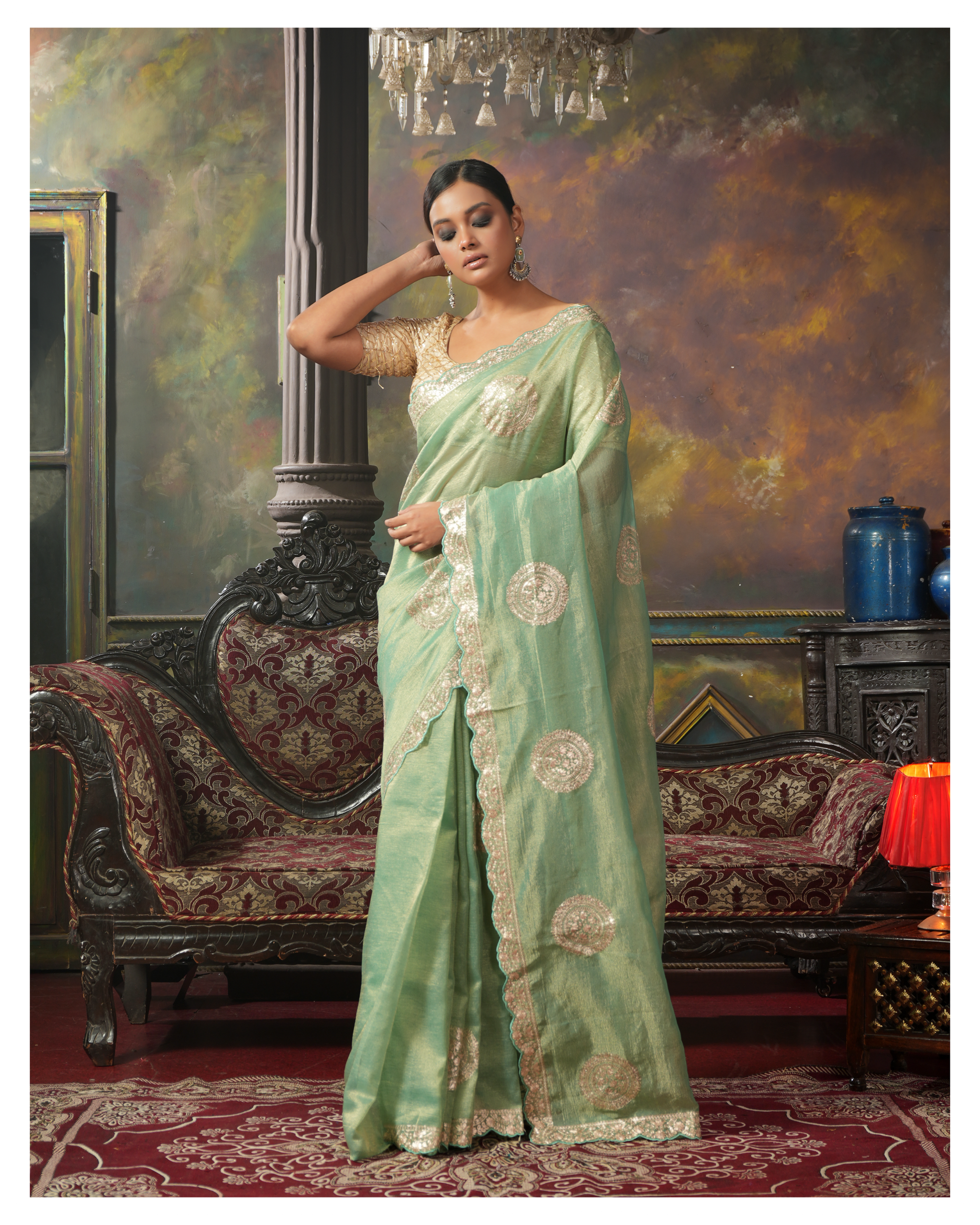 Color: Sea Green, golden Zari