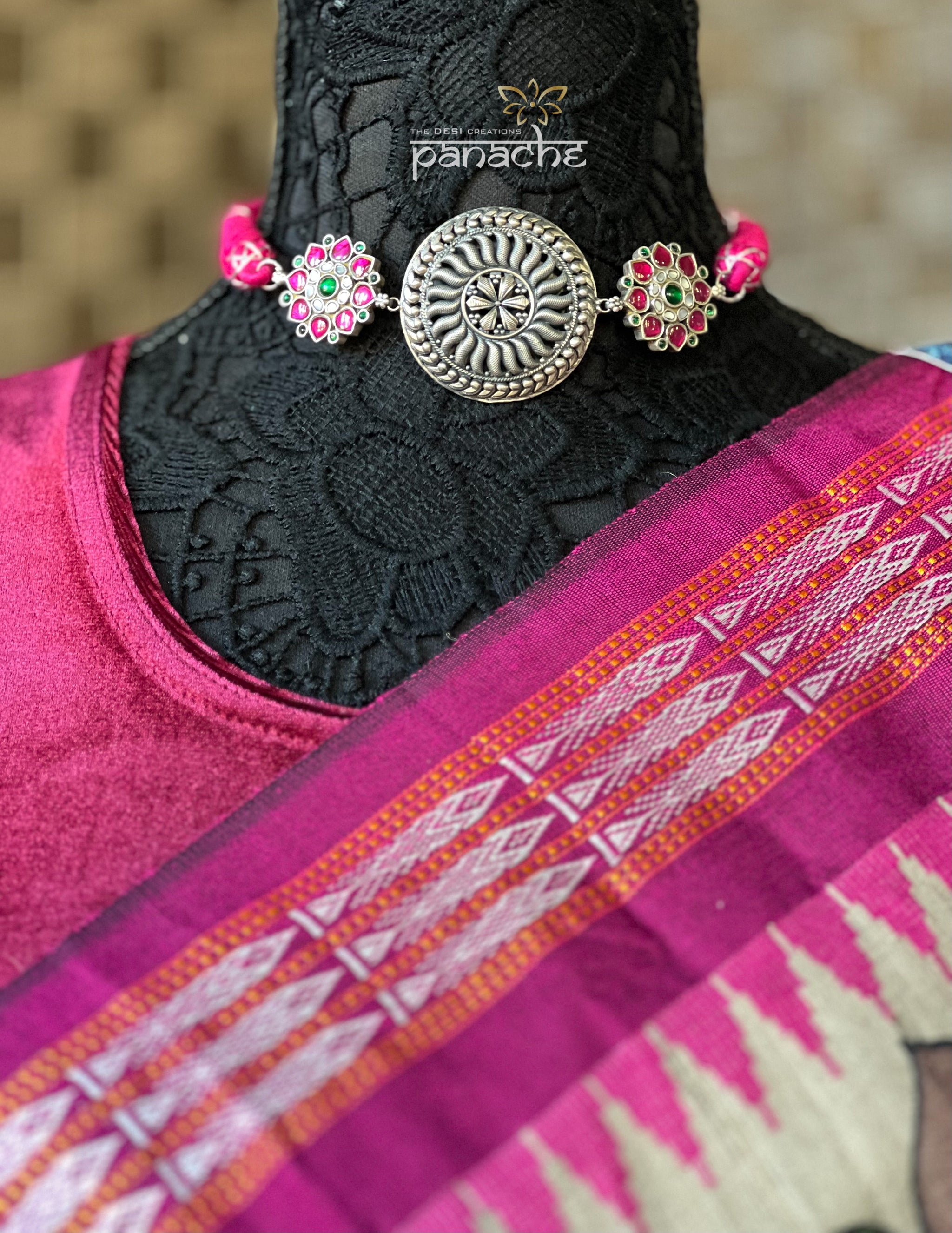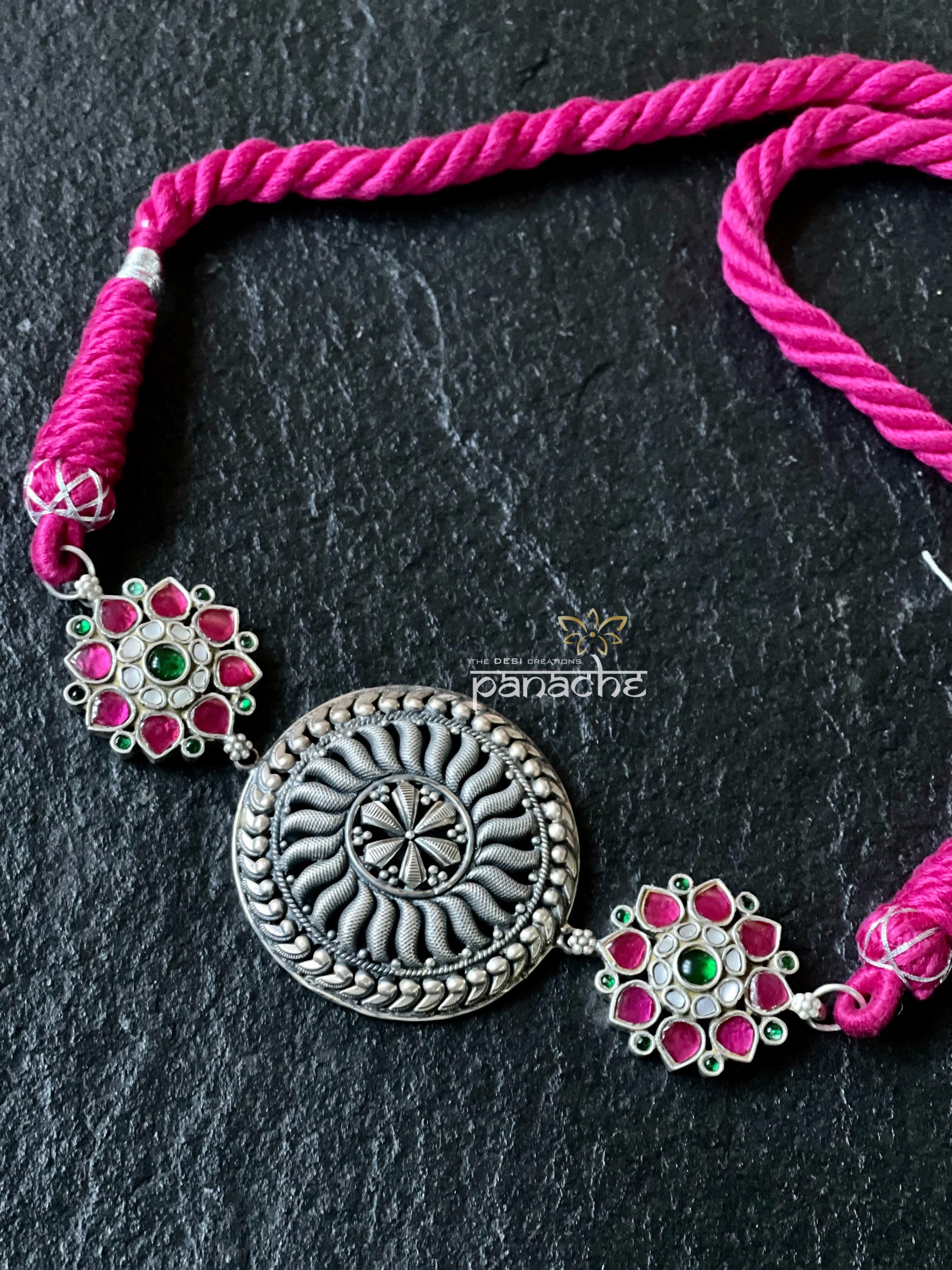 Fusion Choker 925 Silver - Pink Kundan