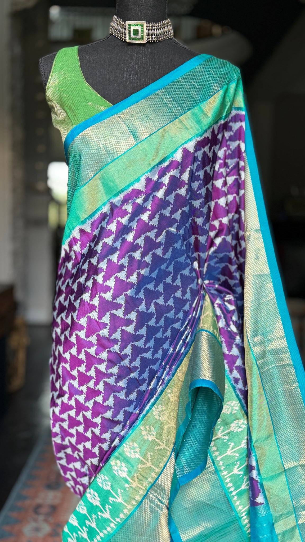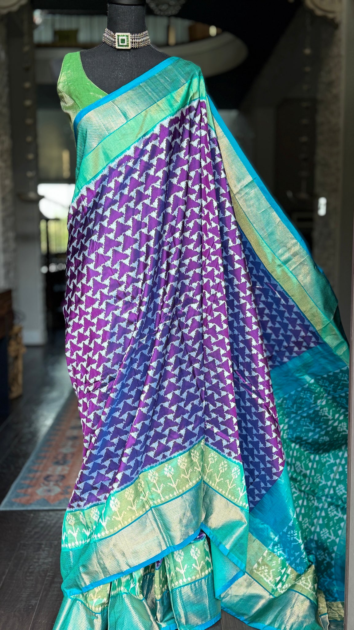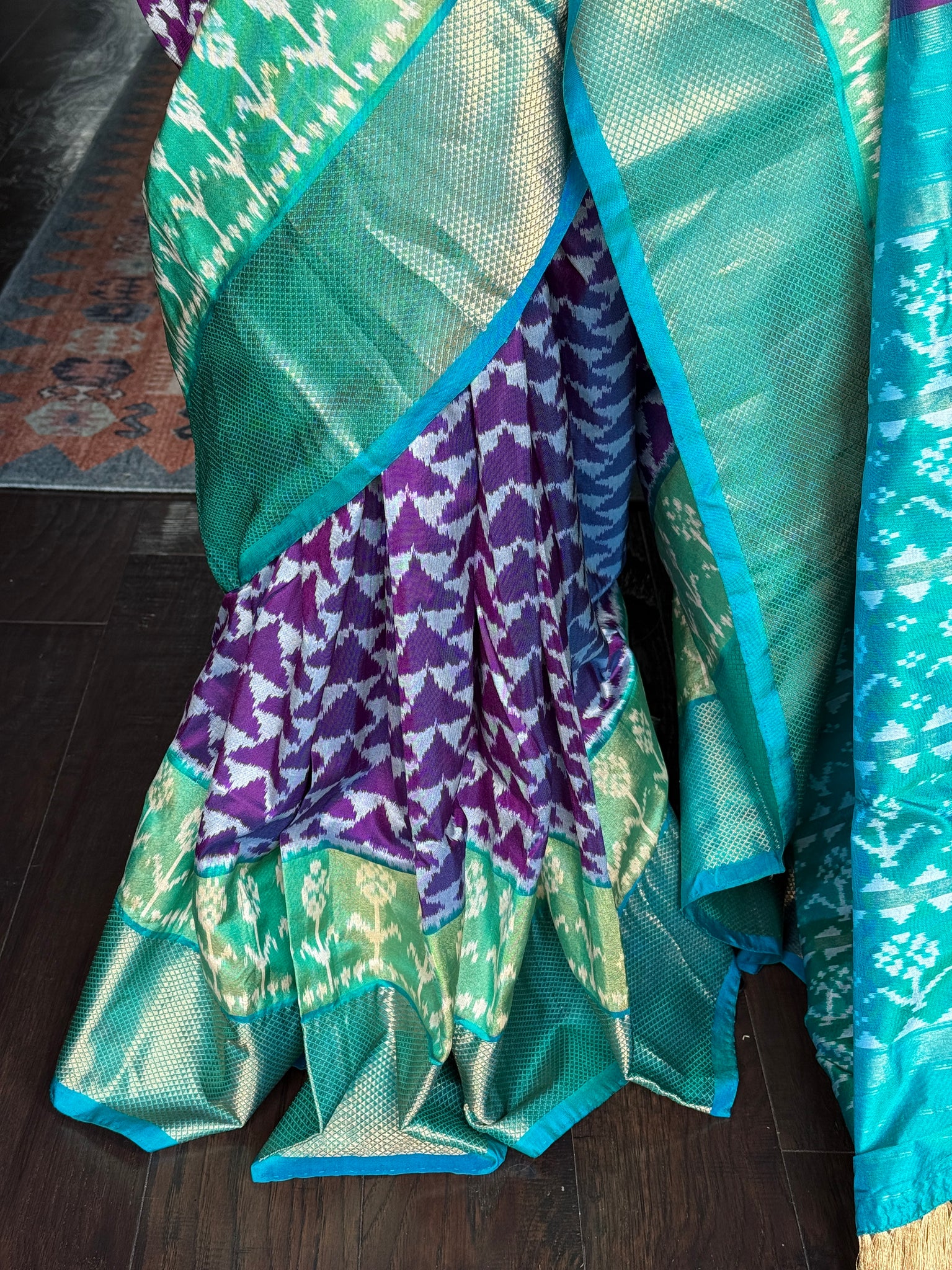 Pure Silk Ikat - Purple Sea Green Pochampally