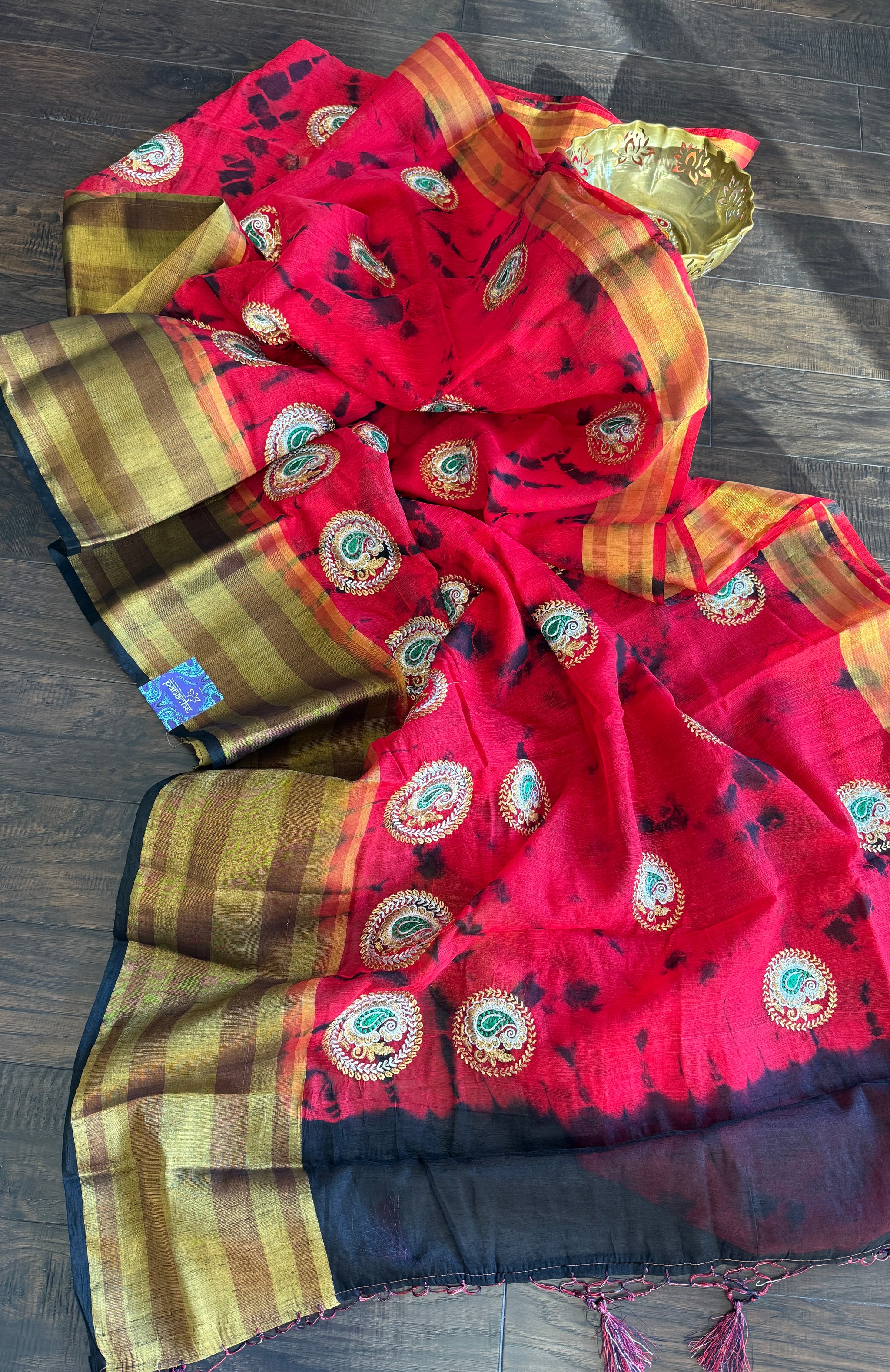 Soft Dupion Tie-Dye Saree - Ted Black Paisley