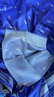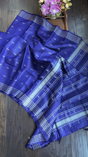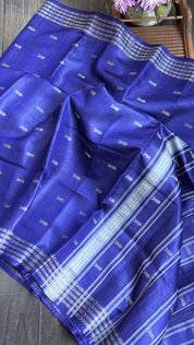 Handwoven Tussar Silk - Purplish Blue Golden Zari