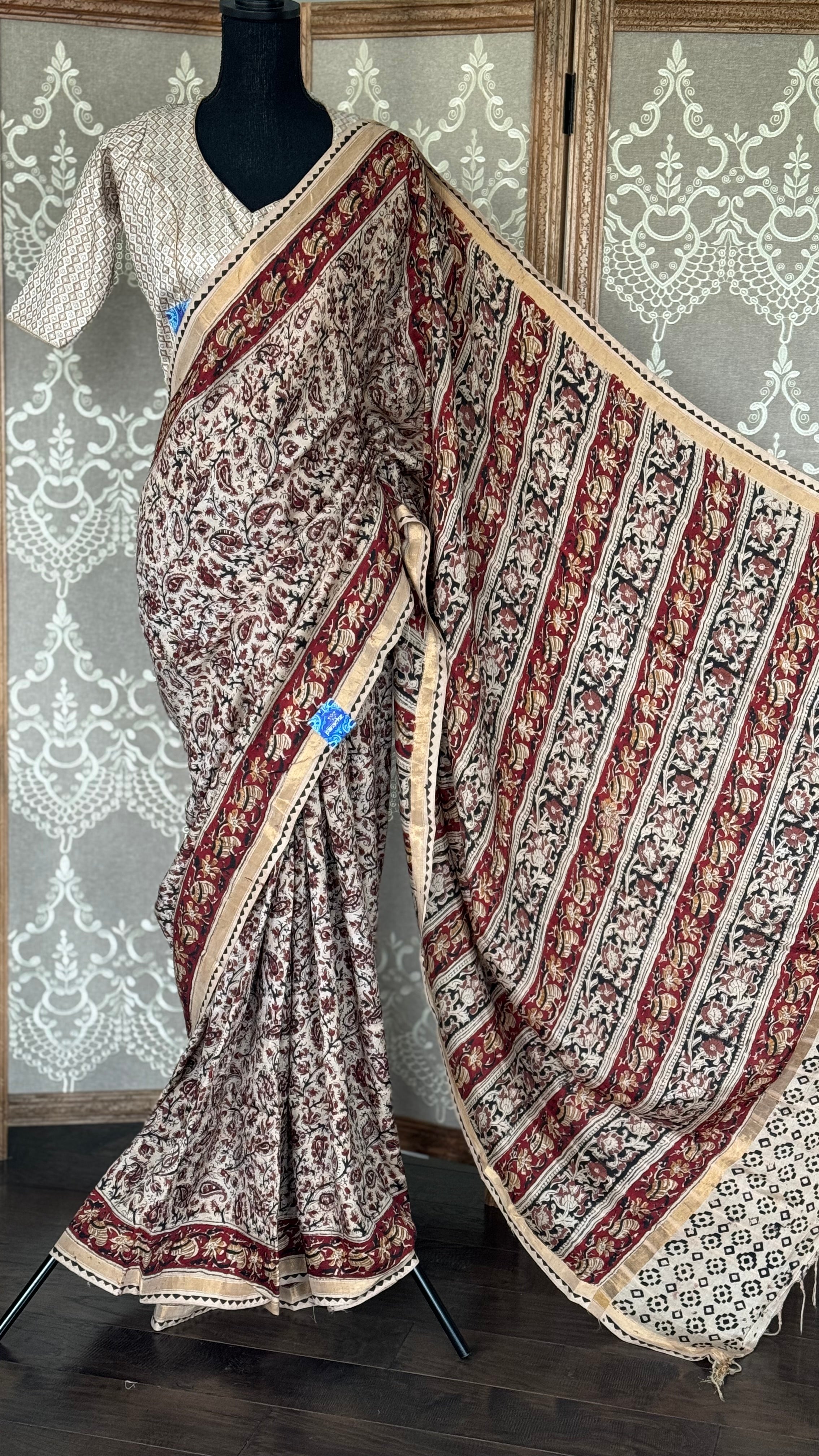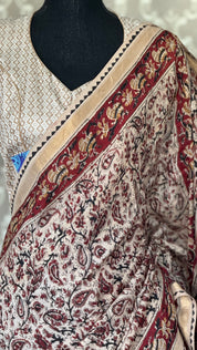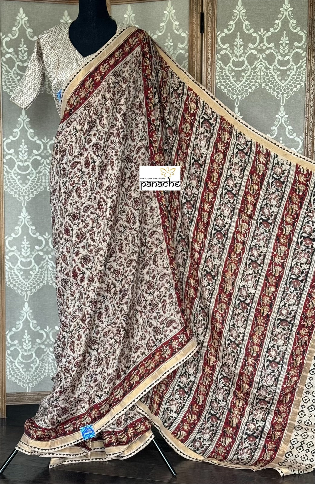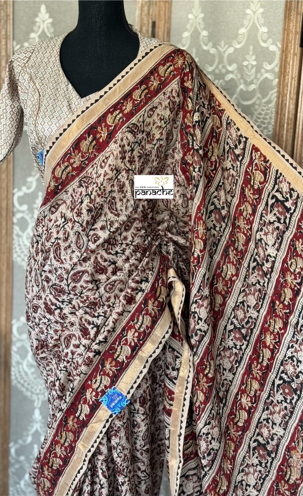 Nellore Silk Kalamkari - Wheat Beige Paisley