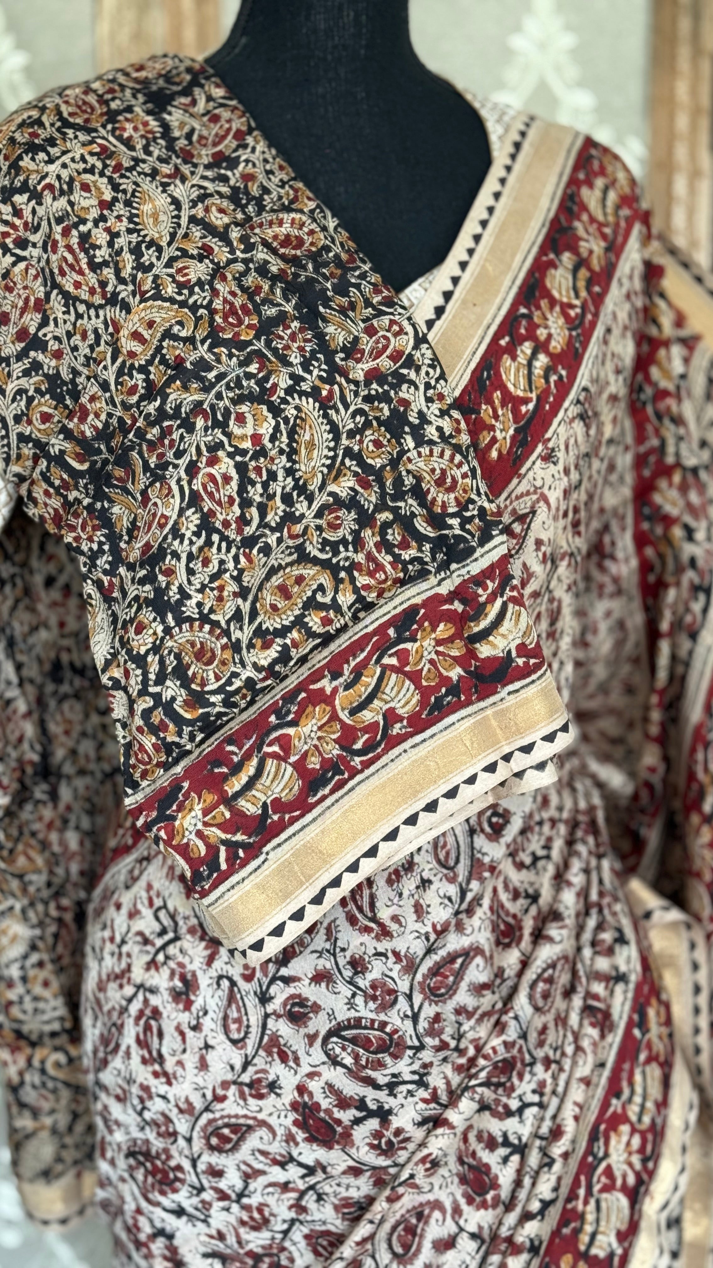 Design : Wheat/beige body with black Kalamkari hand block print with Organic colors